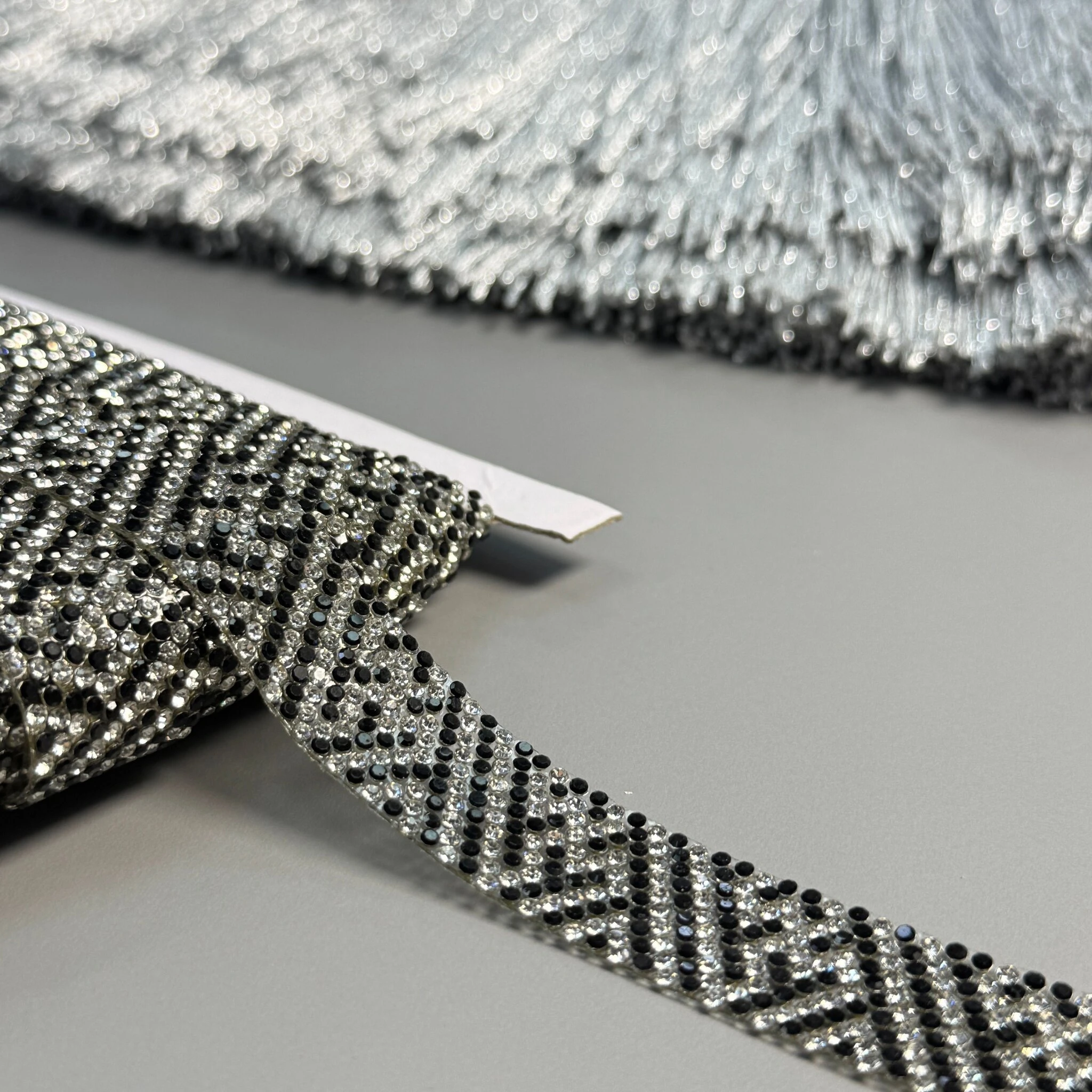 Тасьма клейова з стразами ss6-2 (10 метрів), прозрачний+чорний