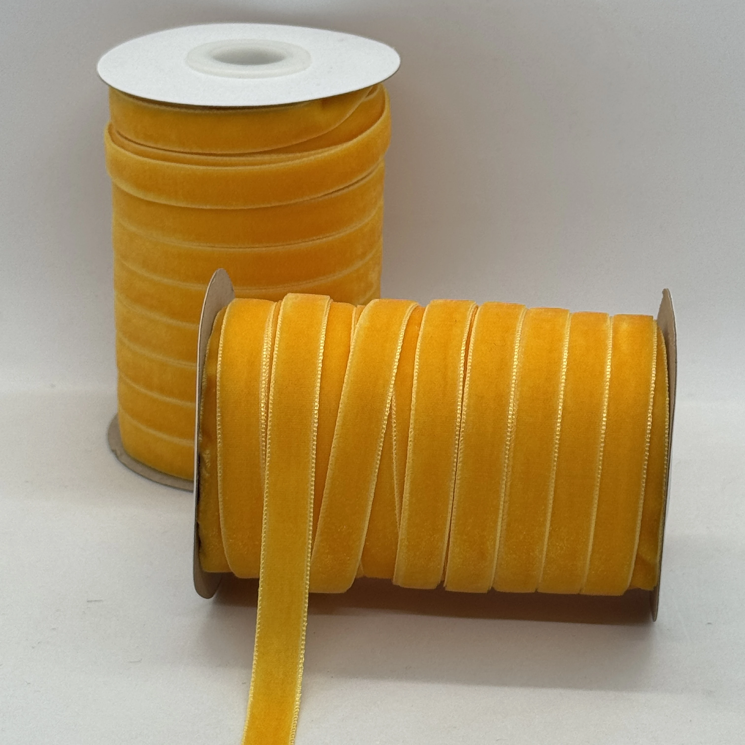 Стрічка оксамит 1 см (25 ярдів/22,75 м.), 19 жовтий