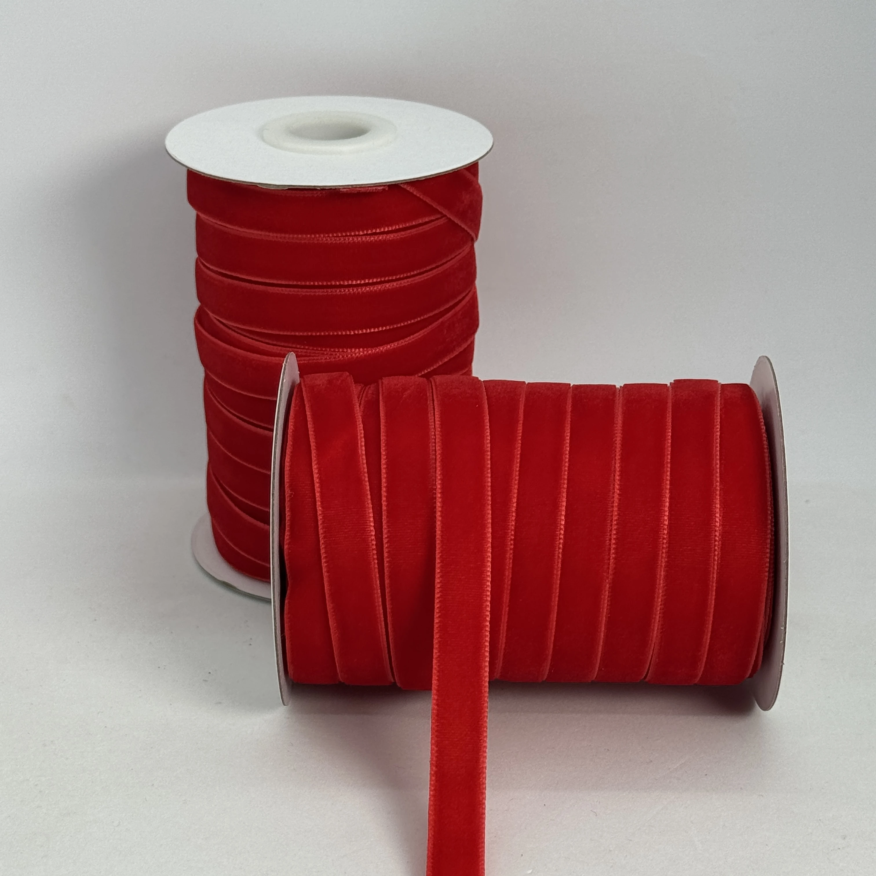 Стрічка оксамит 1 см (25 ярдів/22,75 м.), 40 світлий червоний