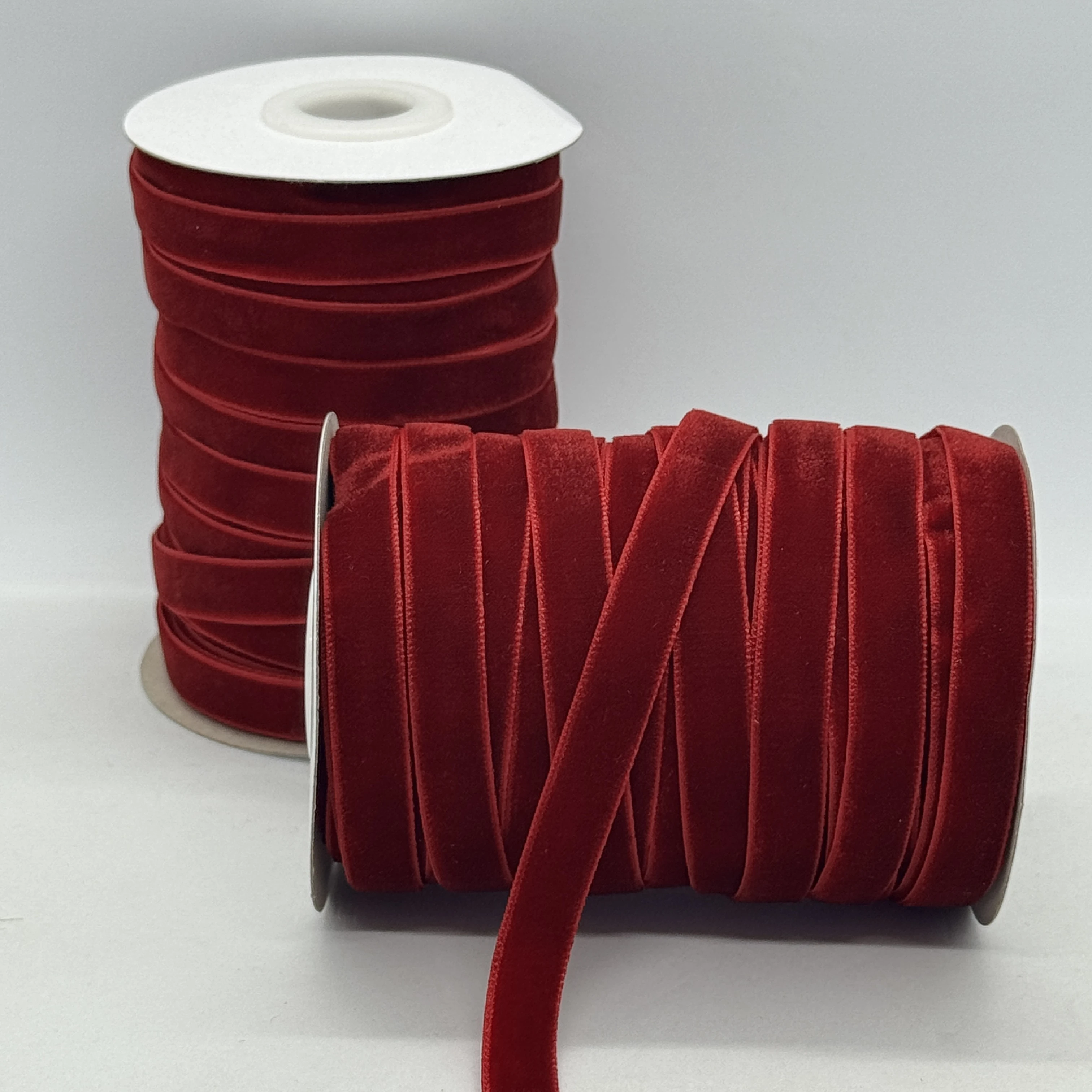 Стрічка оксамит 1 см (25 ярдів/22,75 м.), 42 темний червоний