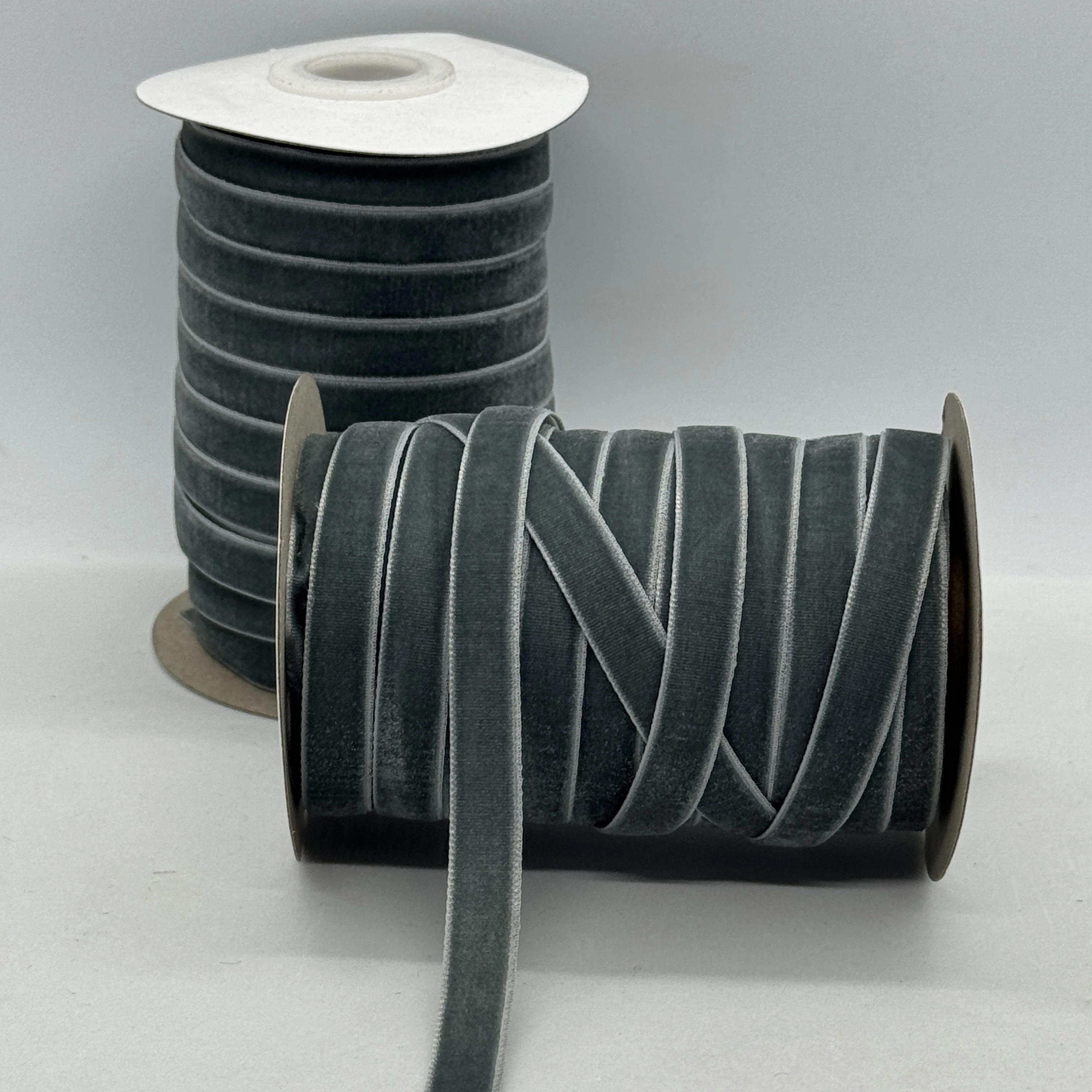Стрічка оксамит 1 см (25 ярдів/22,75 м.), 63 темний сірий