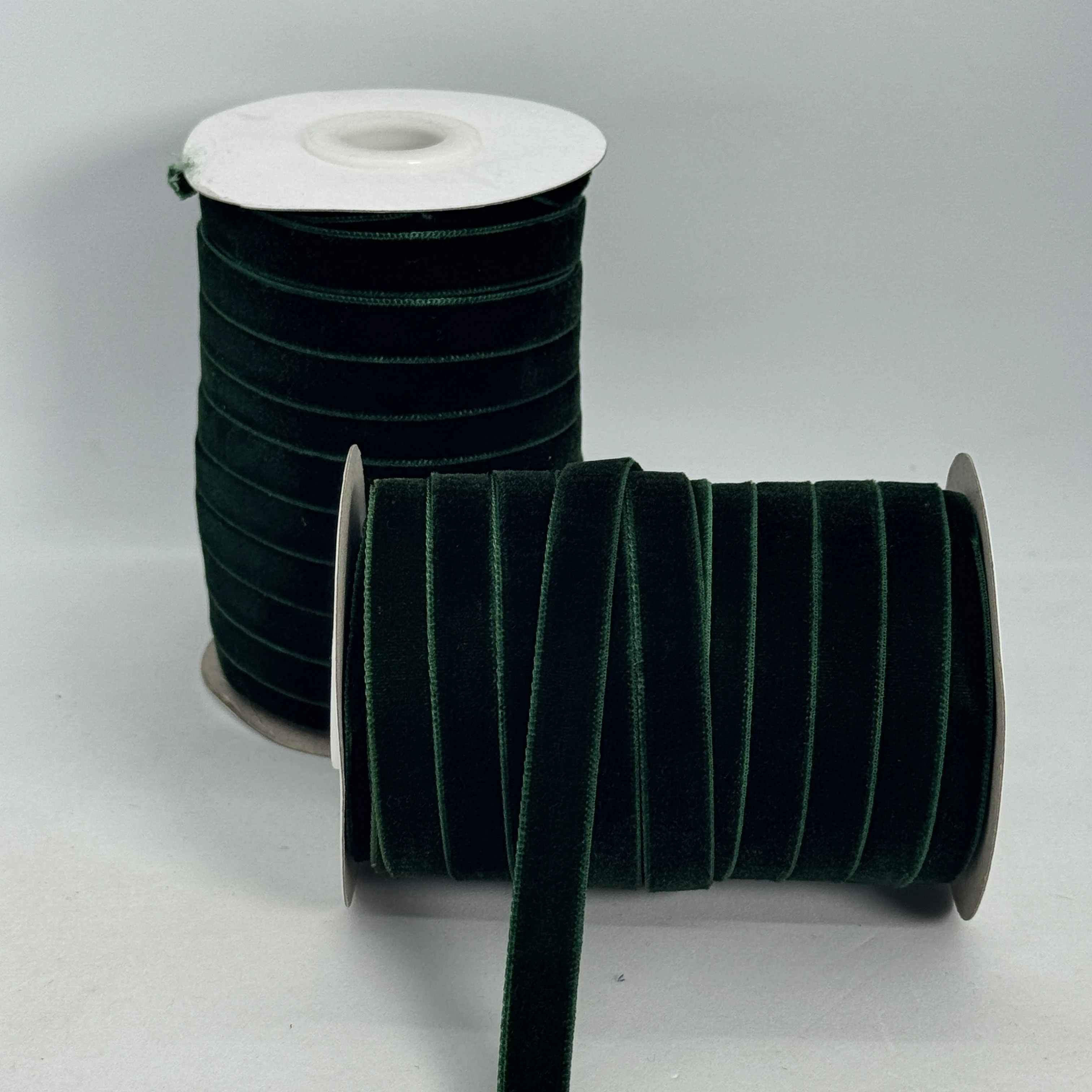 Стрічка оксамит 1 см (25 ярдів/22,75 м.), 93 темний зелений
