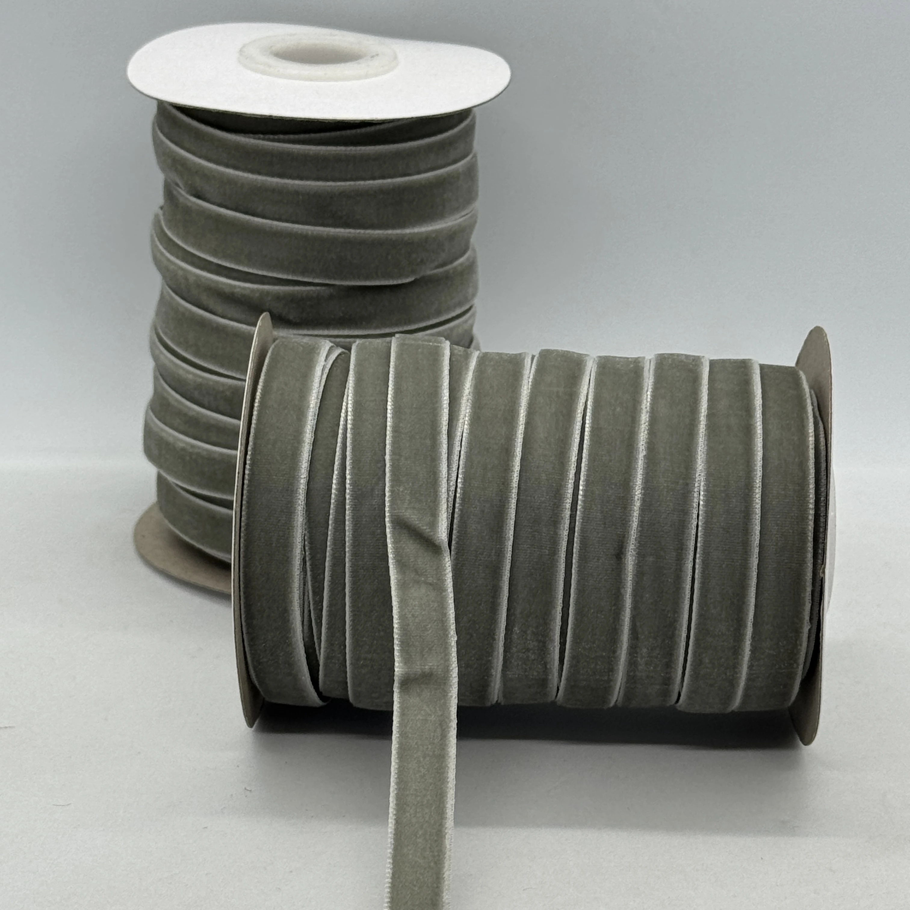 Стрічка оксамит 1 см (25 ярдів/22,75 м.), 94 світлий сірий