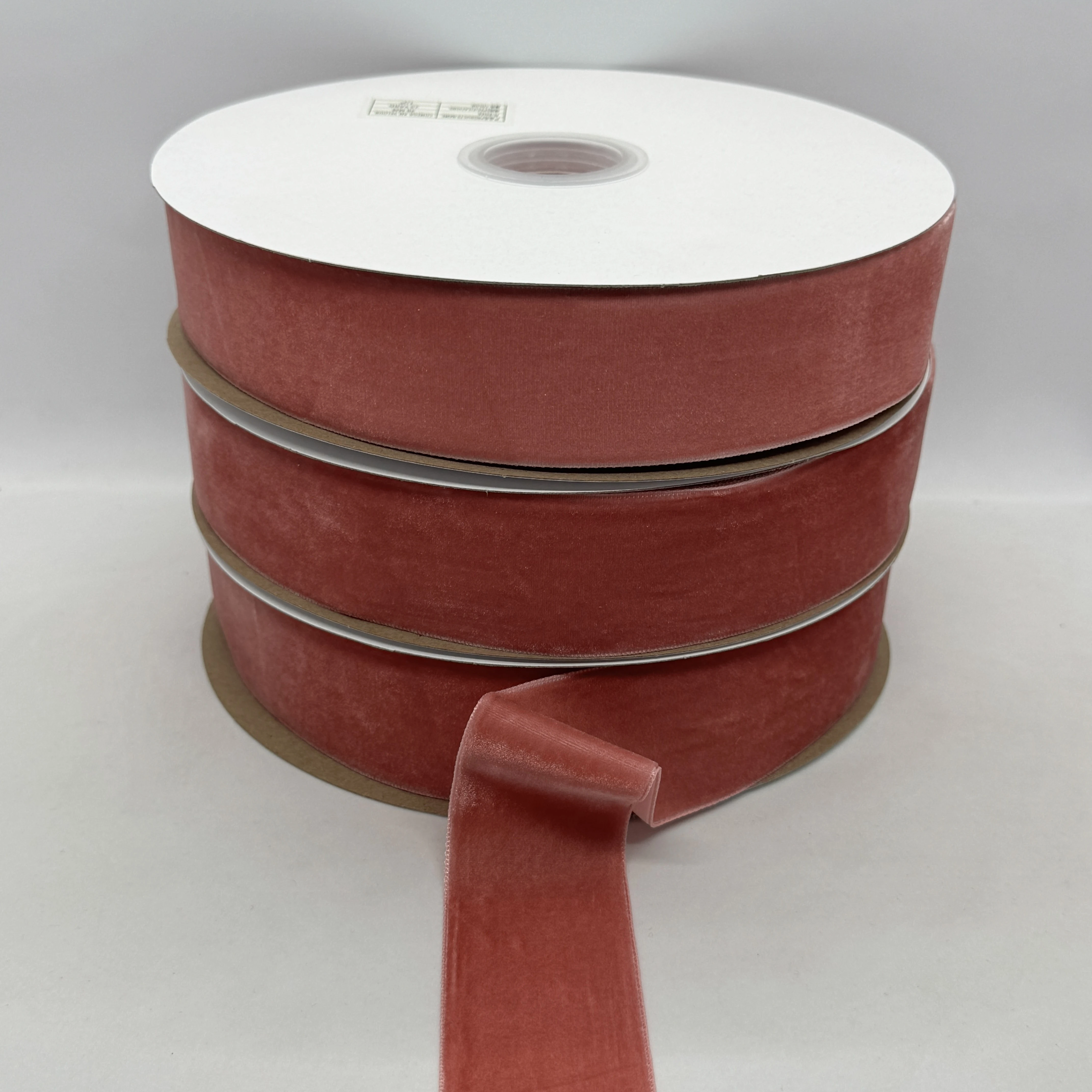 Стрічка оксамит 3.8 см (25 ярдів/22,75 м.), 10 рожева пудра
