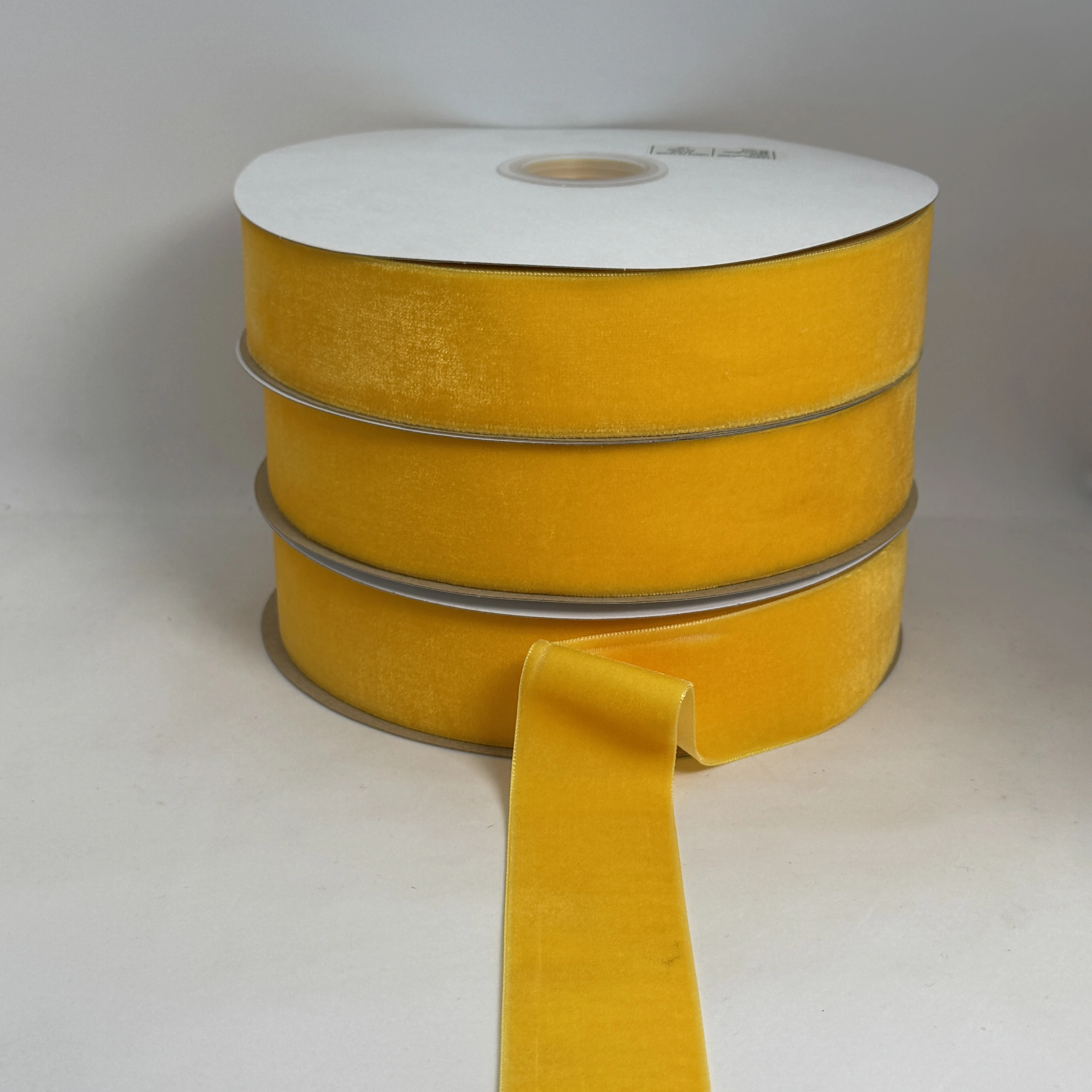 Стрічка оксамит 3.8 см (25 ярдів/22,75 м.), 19 жовтий