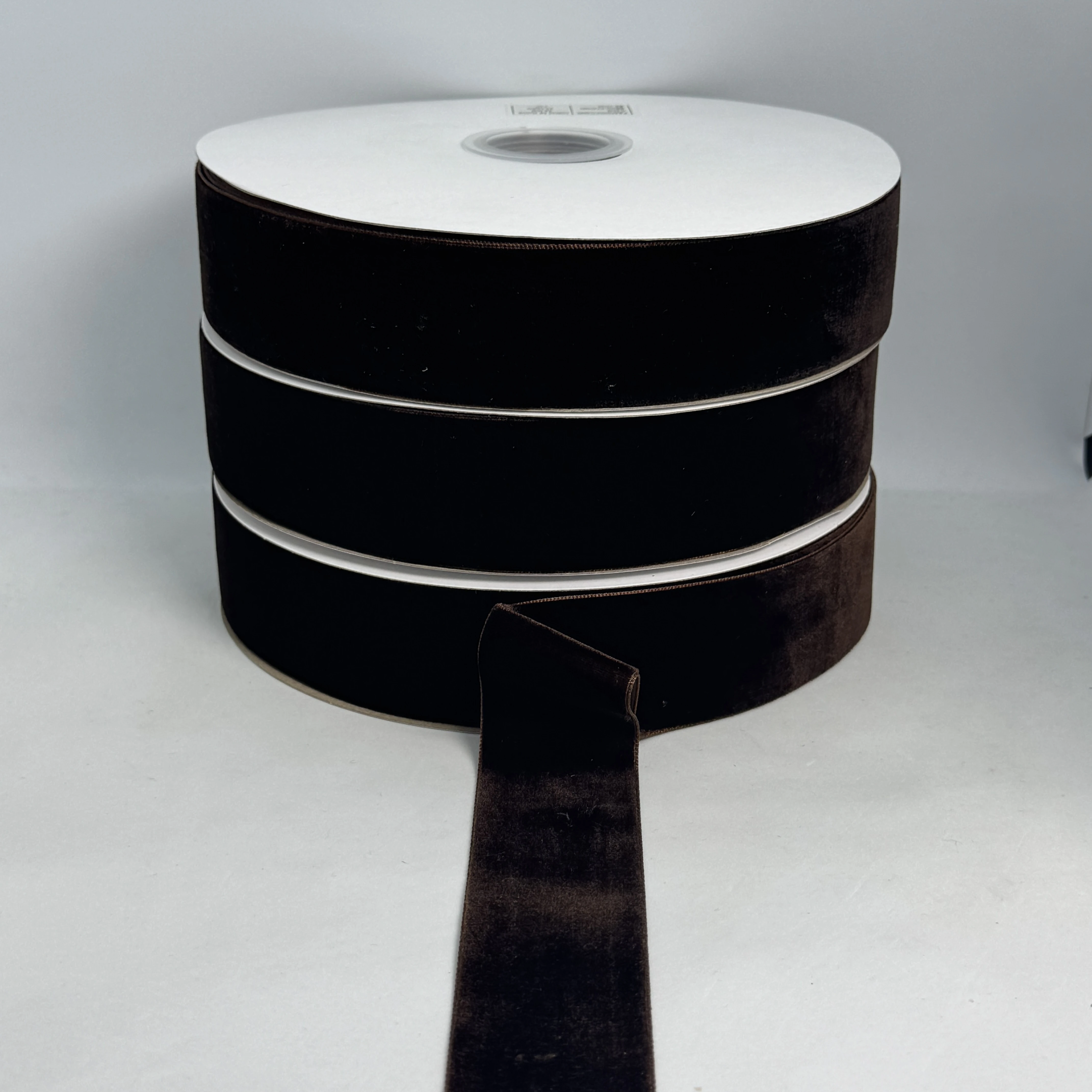 Стрічка оксамит 3.8 см (25 ярдів/22,75 м.), 70 темний коричневий