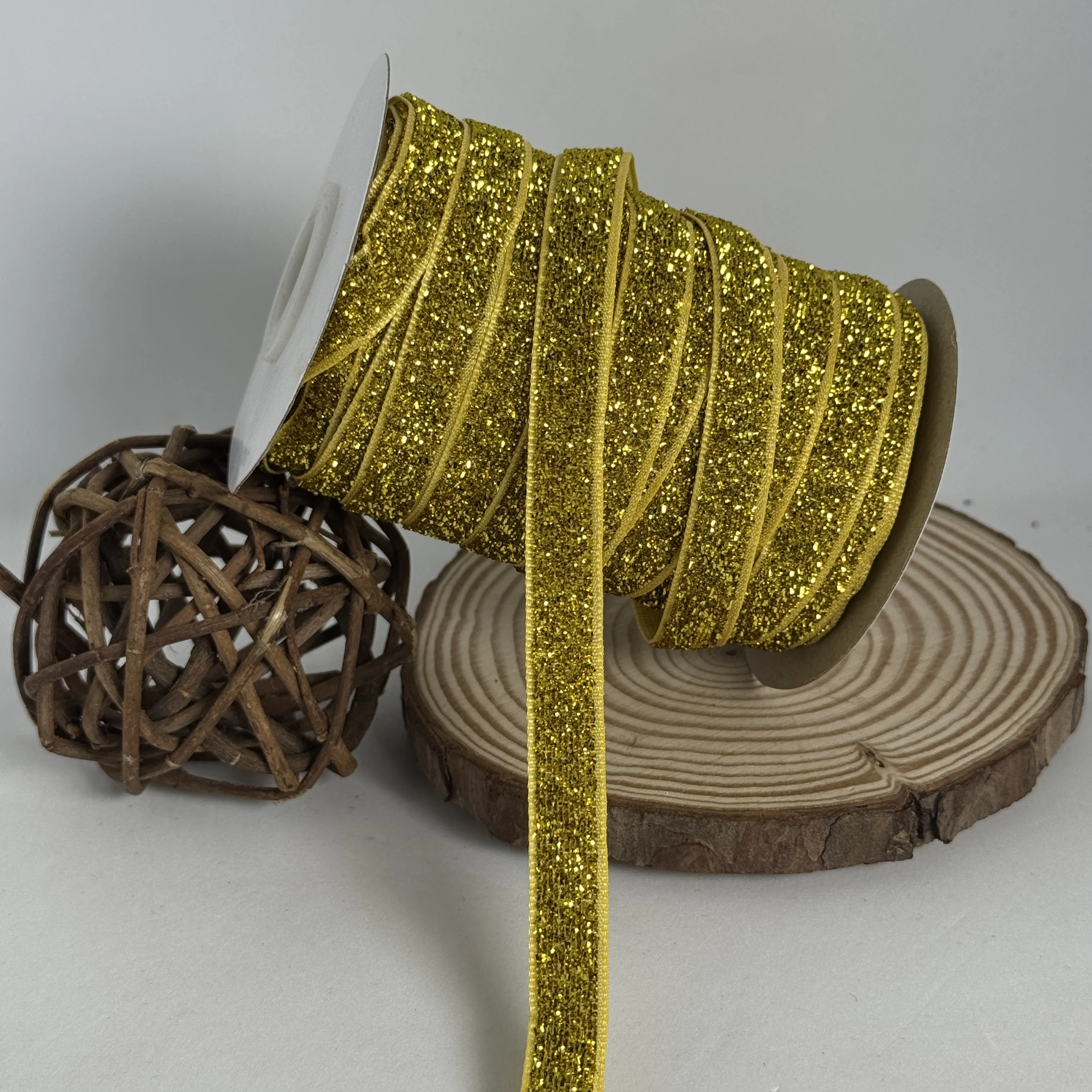Стрічка оксамитова парча люрекс 1 см (25 ярдів/22,75 м.), 02 золото