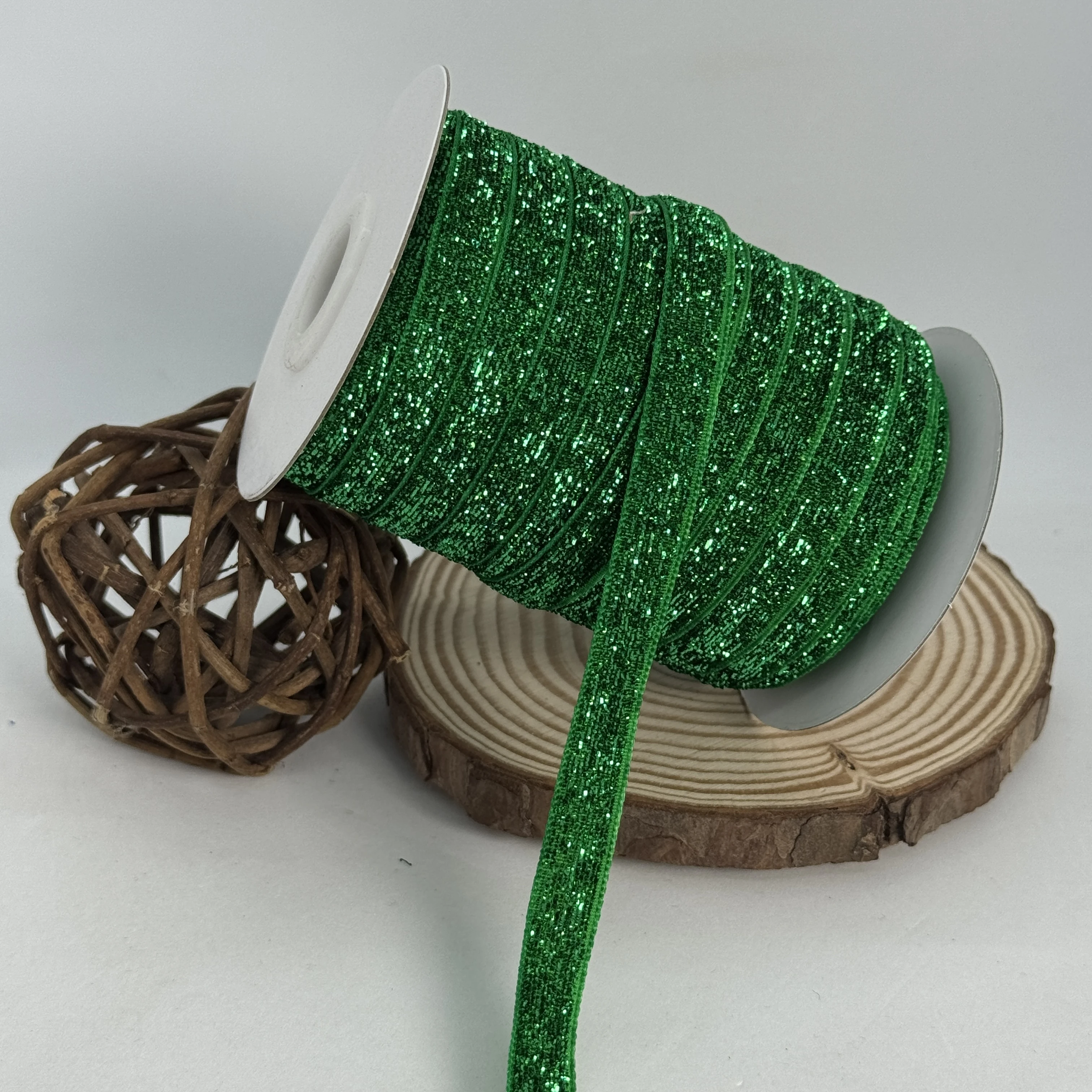 Стрічка оксамитова парча люрекс 1 см (25 ярдів/22,75 м.), 06 зелений