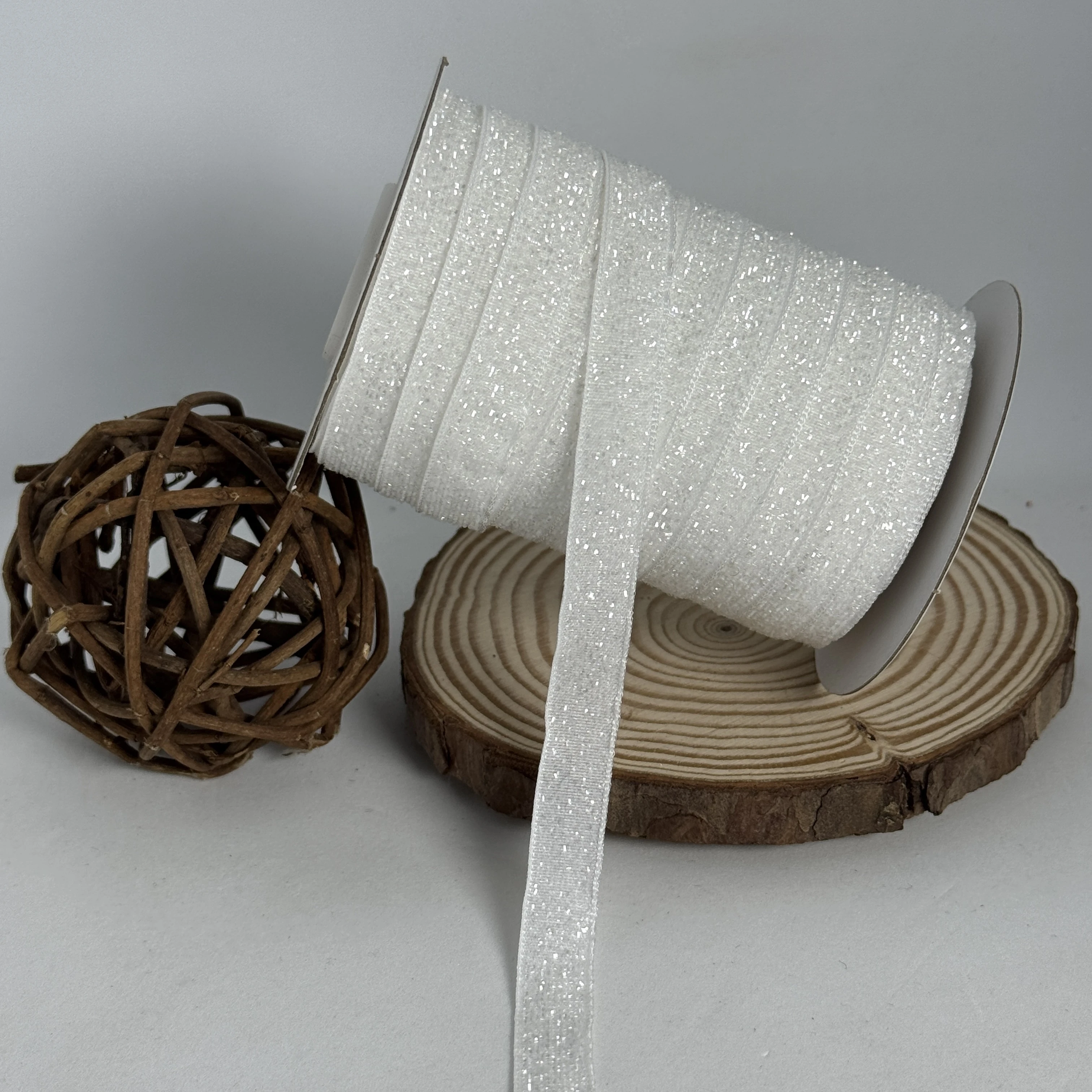 Стрічка оксамитова парча люрекс 1 см (25 ярдів/22,75 м.), 07 білий