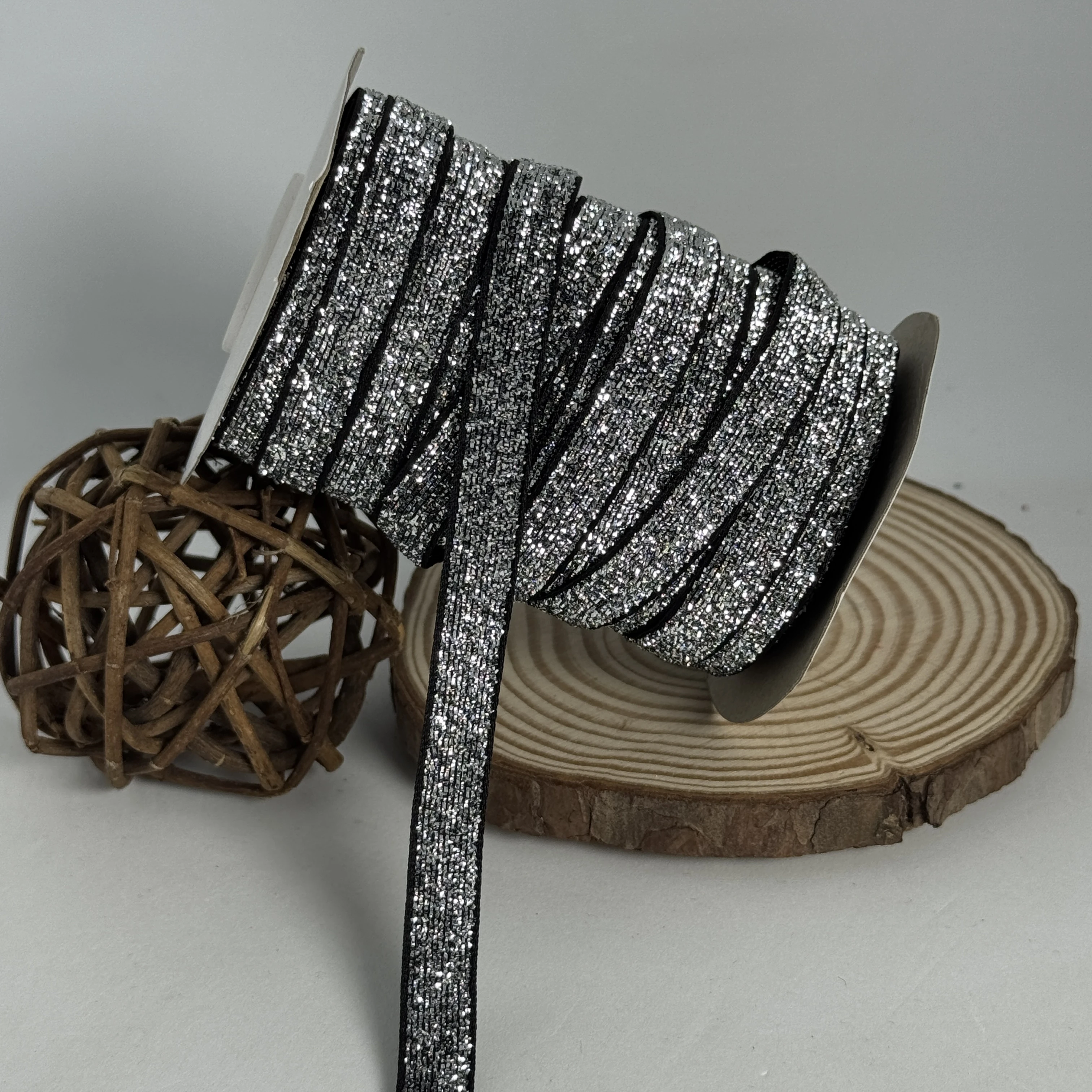 Стрічка оксамитова парча люрекс 1 см (25 ярдів/22,75 м.), 17 срібло + чорний