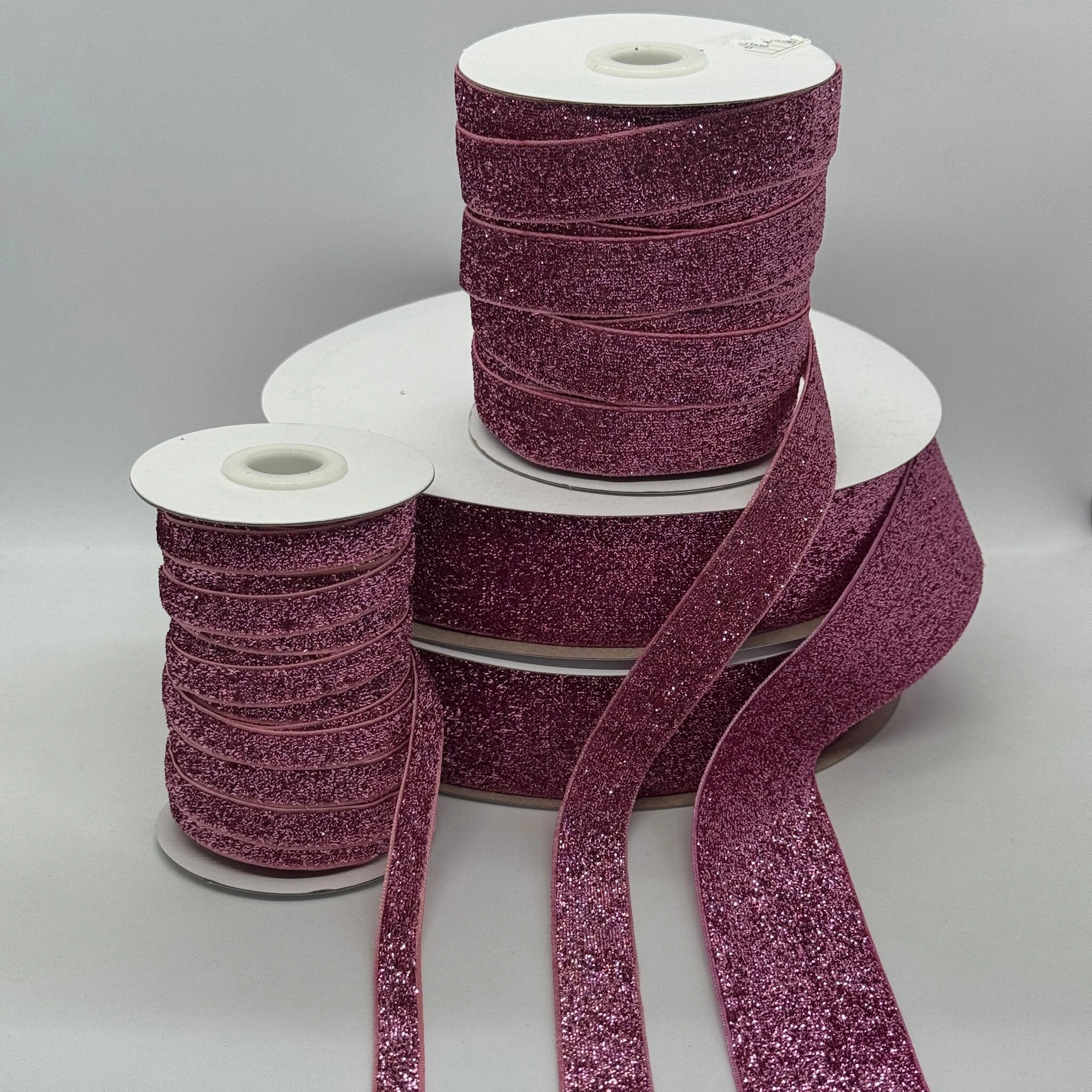 Стрічка оксамитова парча люрекс 1 см (25 ярдів/22,75 м.), 18 рожевий