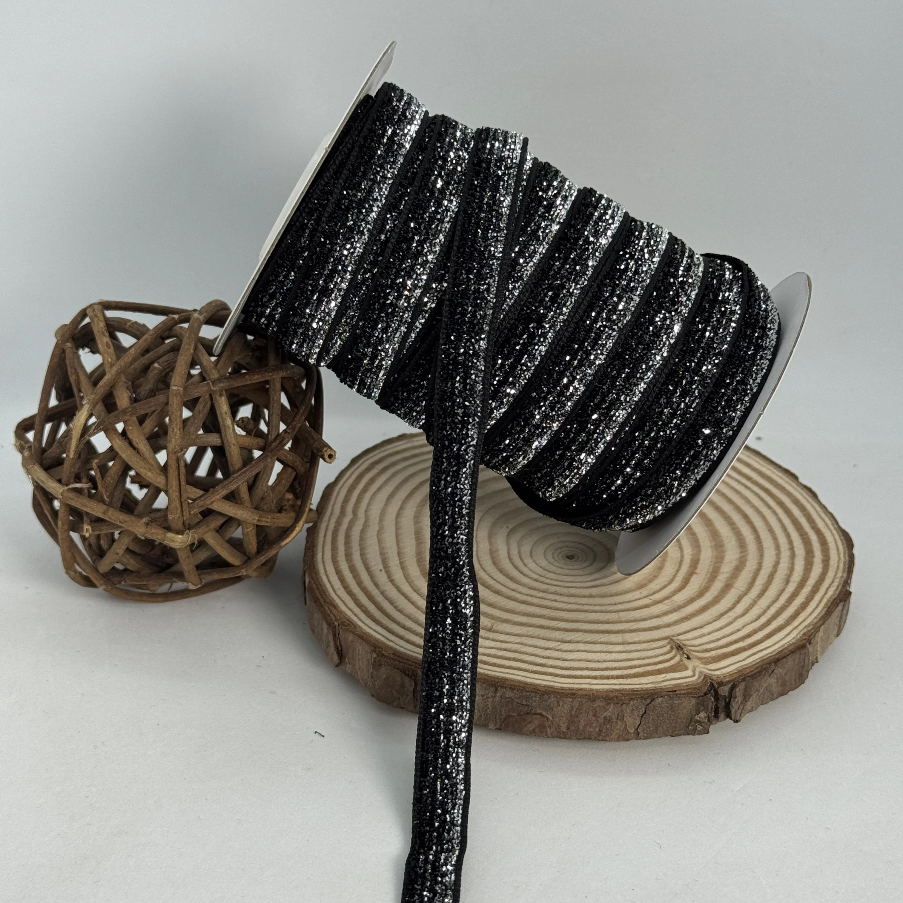 Стрічка оксамитова парча люрекс 1 см (25 ярдів/22,75 м.), 45 чорний + срібло