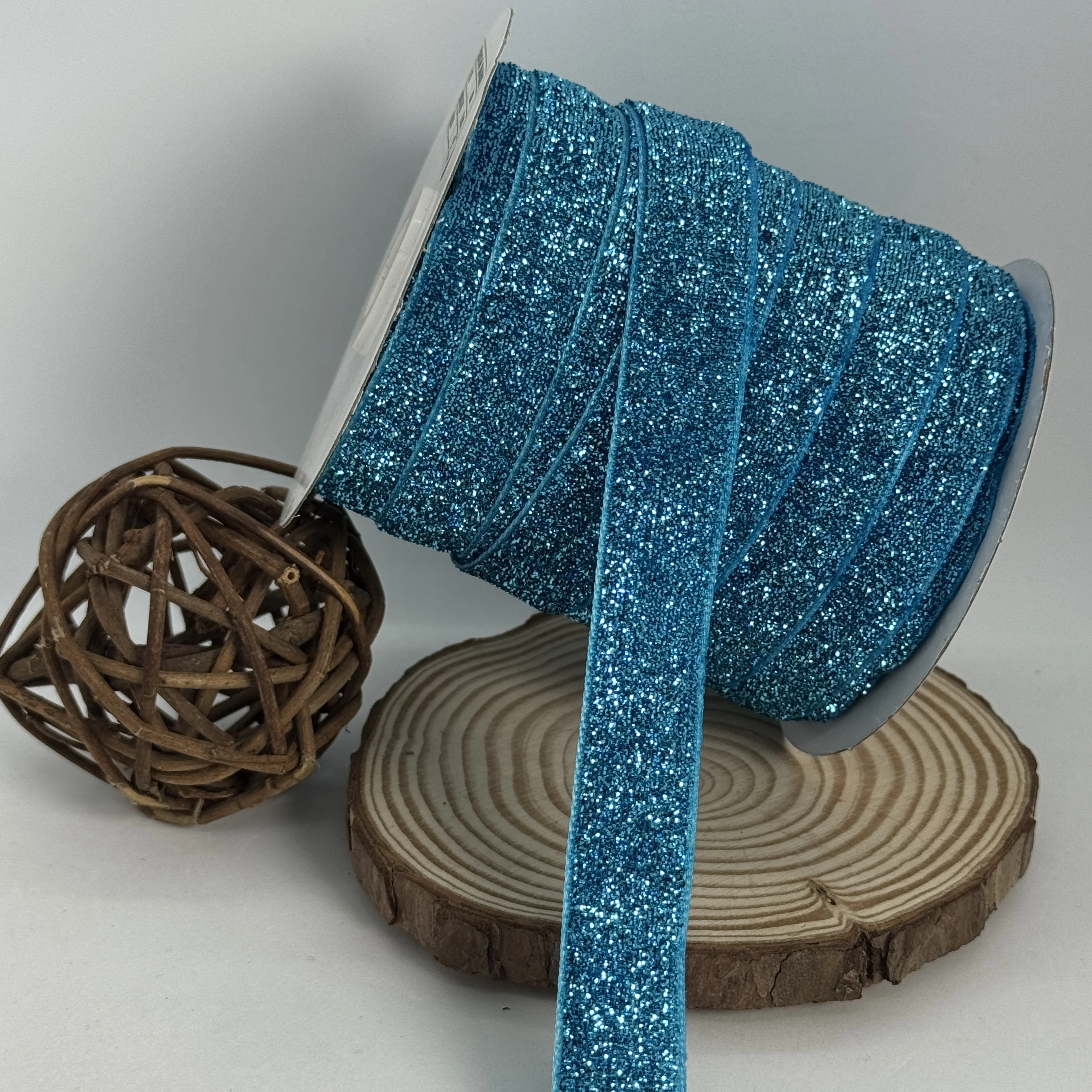 Стрічка оксамитова парча люрекс 2 см (25 ярдів/22,75 м.), 13 бірюза