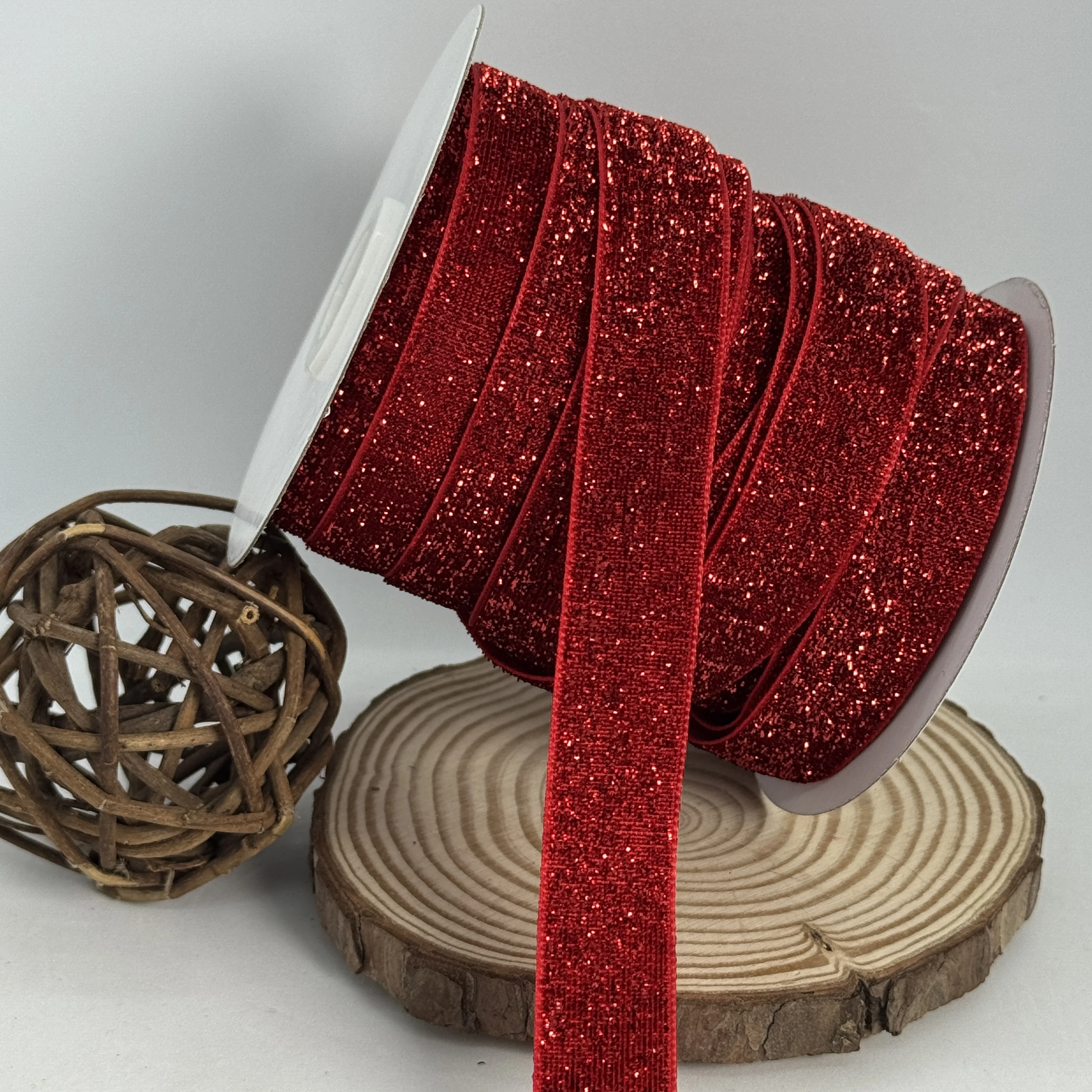 Стрічка оксамитова парча люрекс 2 см (25 ярдів/22,75 м.), 16 червоний