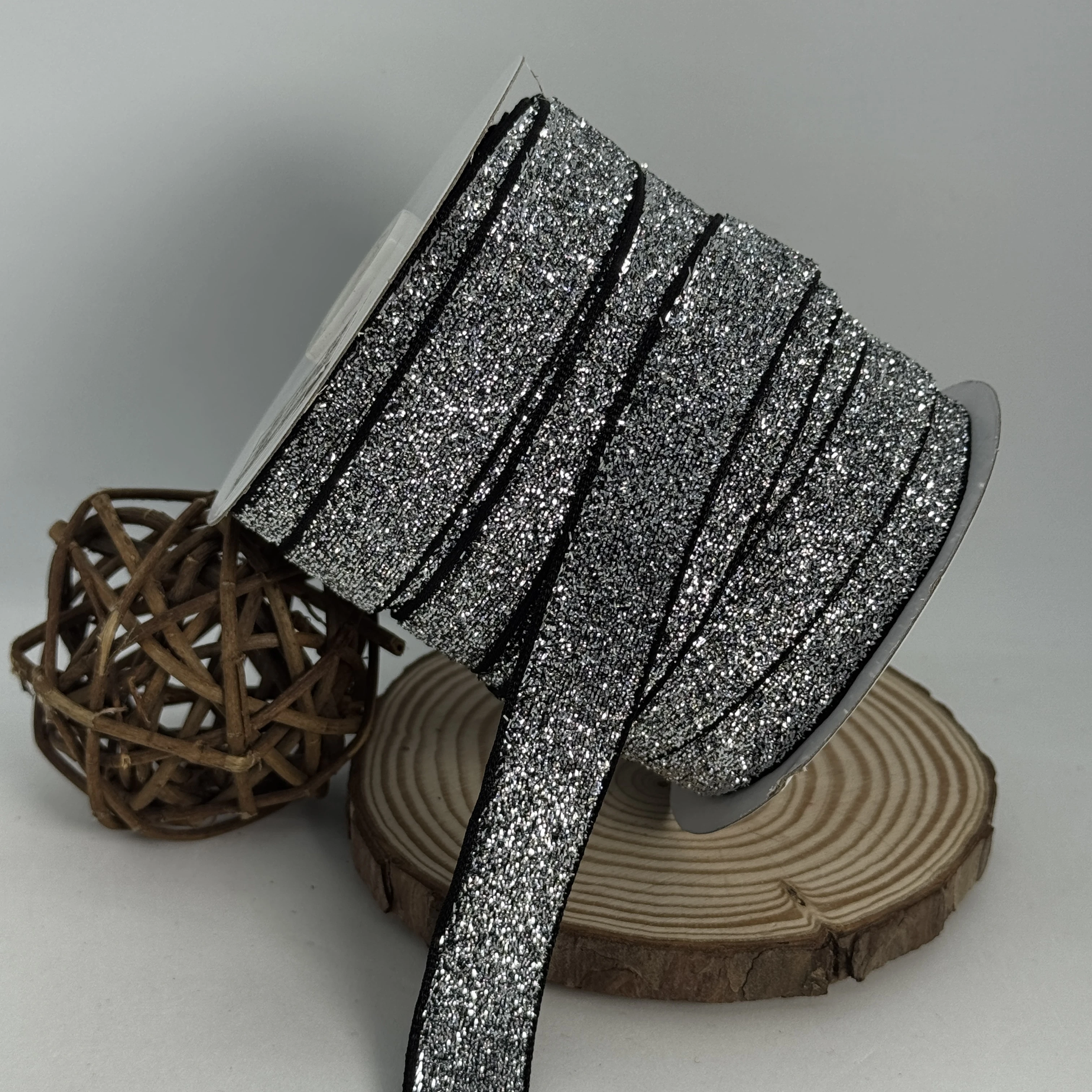 Стрічка оксамитова парча люрекс 2 см (25 ярдів/22,75 м.), 17 срібло + чорний