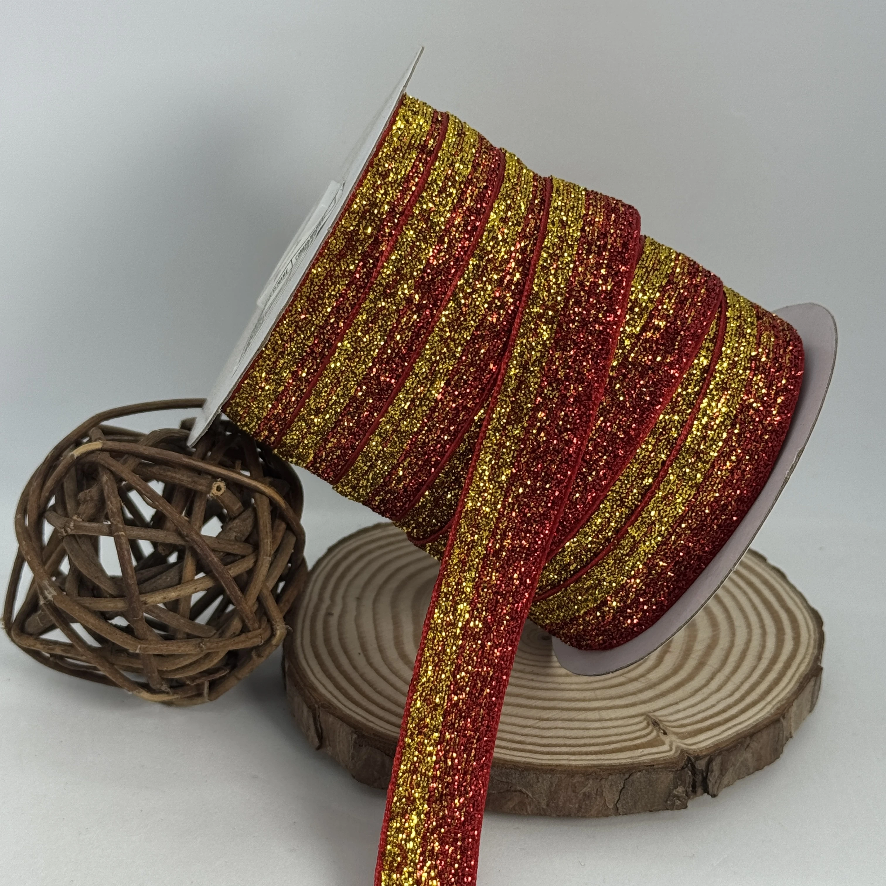 Стрічка оксамитова парча люрекс 2 см (25 ярдів/22,75 м.), 32 червоний + золото