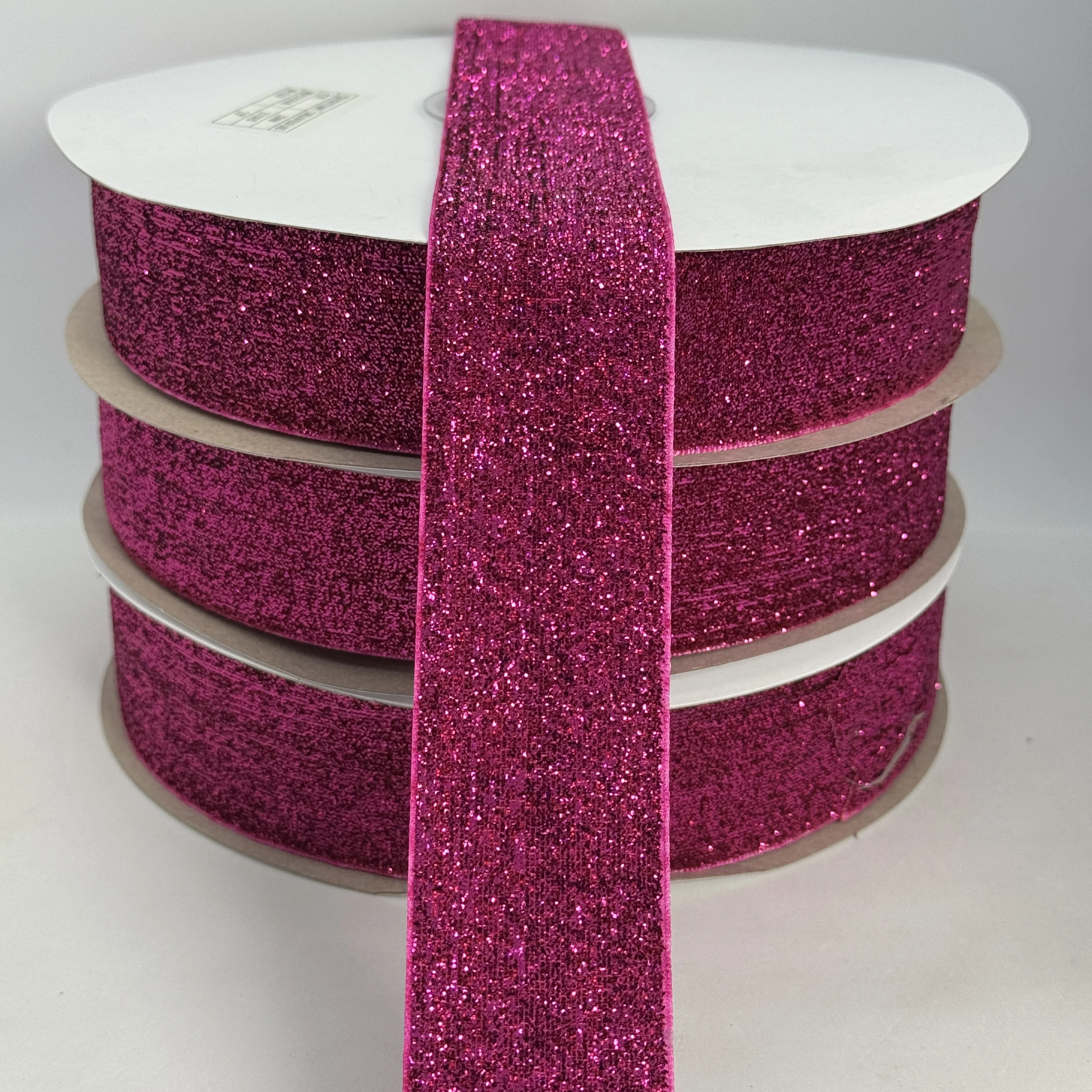 Стрічка оксамитова парча люрекс 3.8 см (25 ярдів/22,75 м.), 23 малиновий
