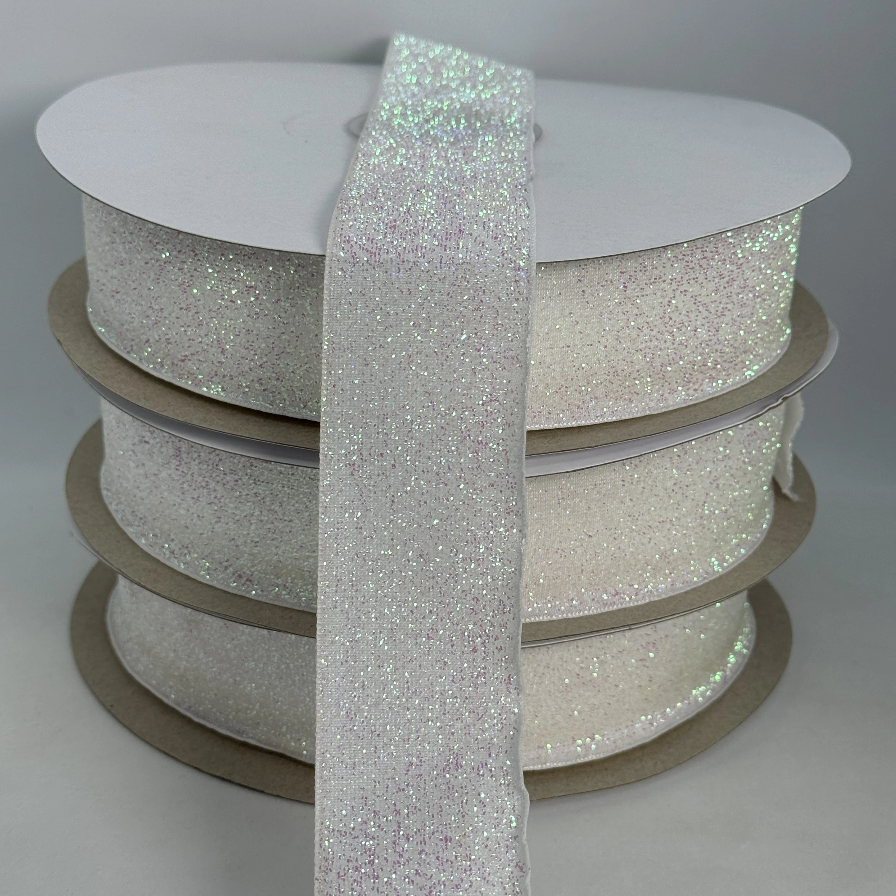 Стрічка оксамитова парча люрекс 3.8 см (25 ярдів/22,75 м.), 28 білий АВ