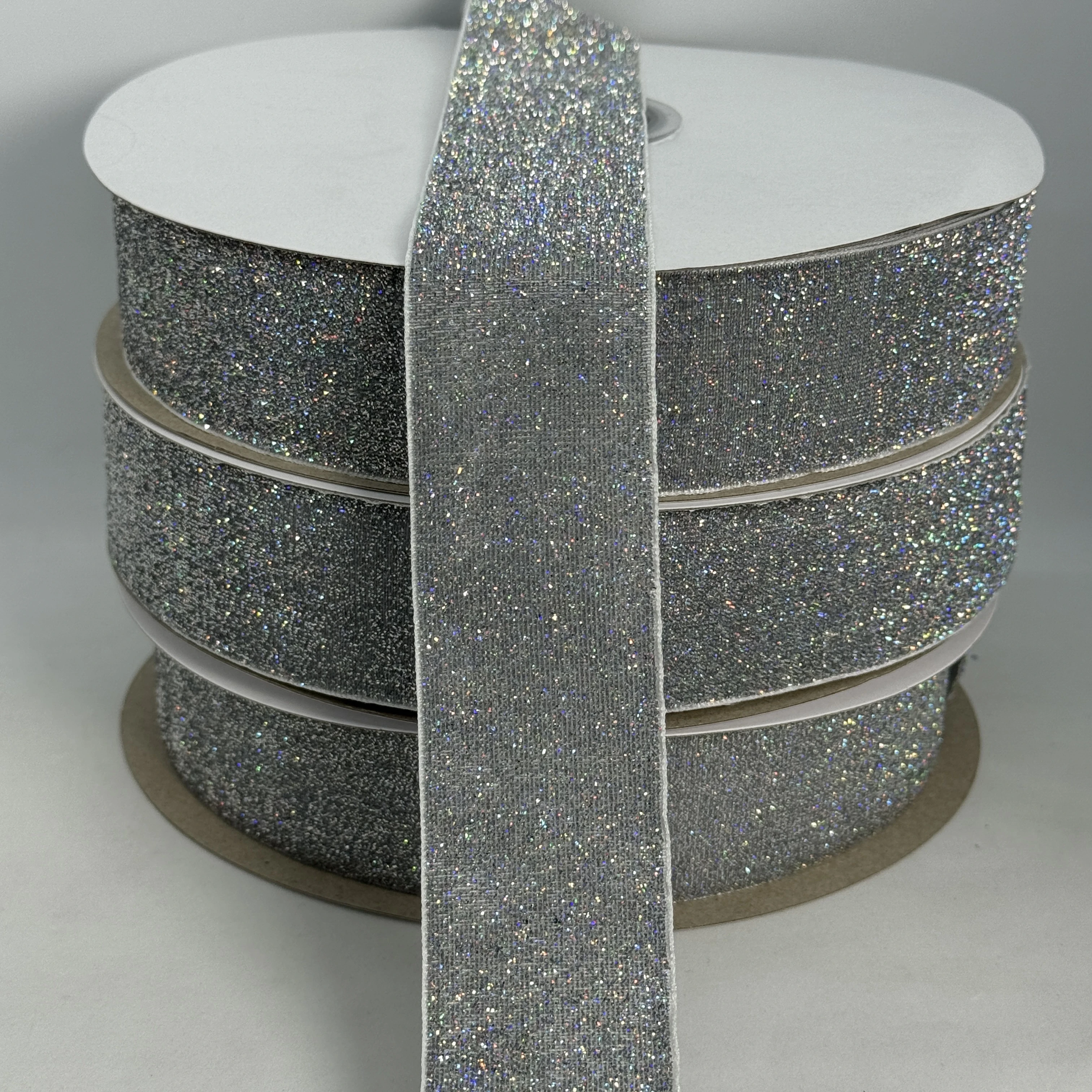 Стрічка оксамитова парча люрекс 3.8 см (25 ярдів/22,75 м.), 30 срібло АВ