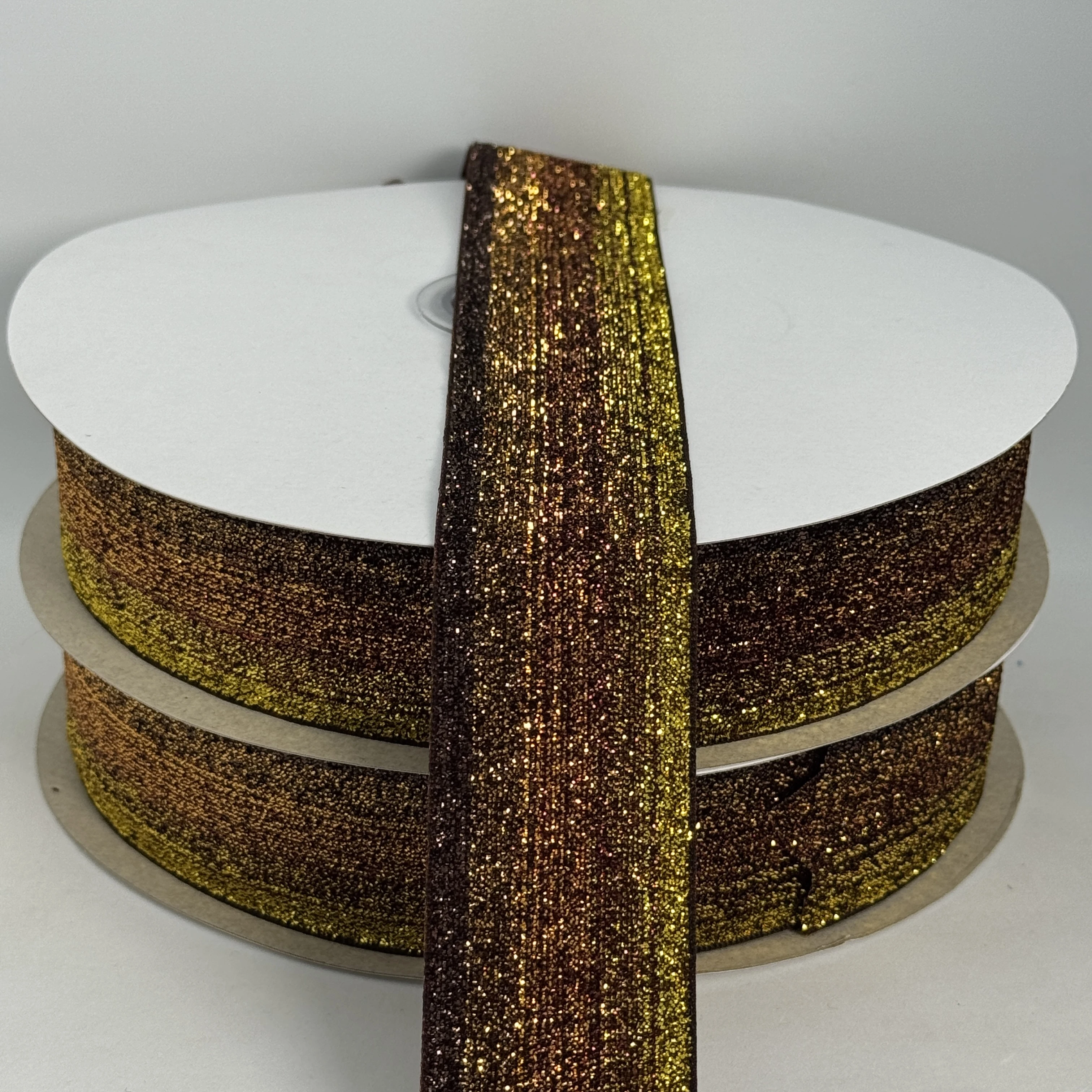 Стрічка оксамитова парча люрекс 3.8 см (25 ярдів/22,75 м.), 31 коричневий + золото