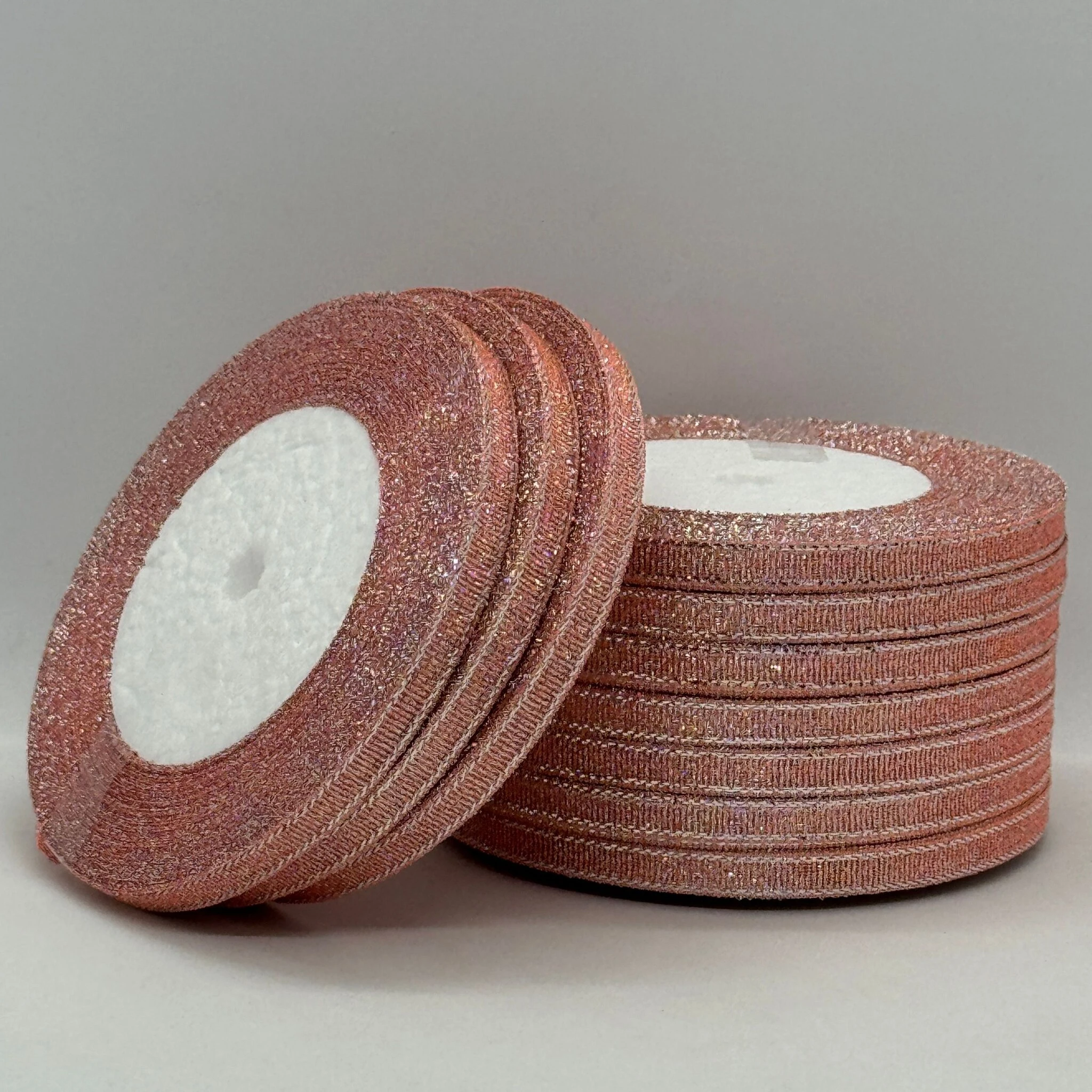 Тасьма парчева 0,6 см (10*25 ярдів/22,75 м.), 109 блідно рожевий + срібло