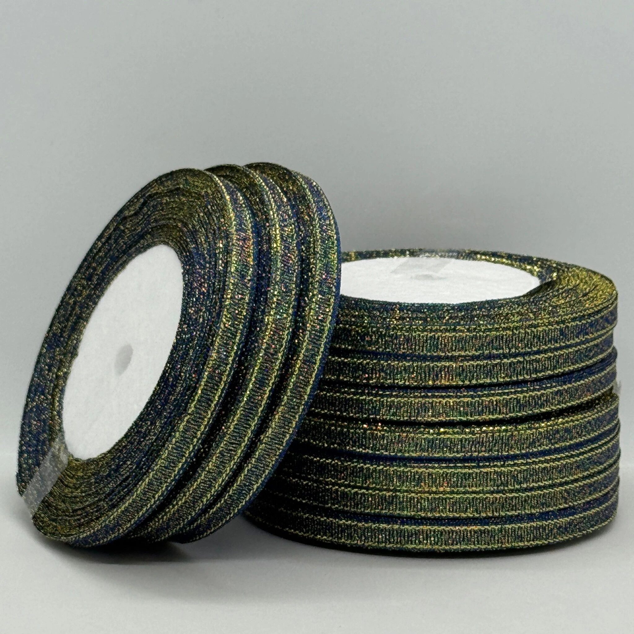 Тасьма парчева 0,6 см (10*25 ярдів/22,75 м.), 40 сосновий + золото