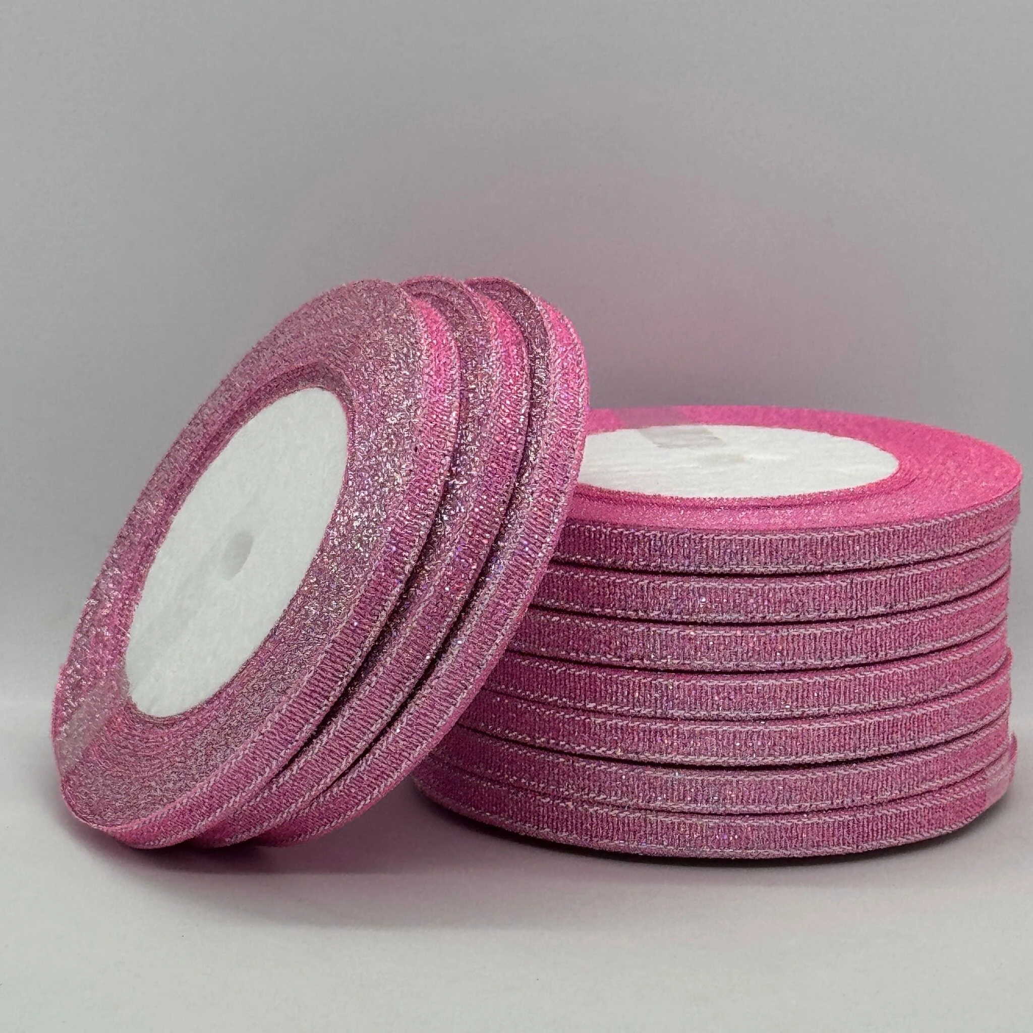 Тасьма парчева 0,6 см (10*25 ярдів/22,75 м.), 45 рожевий + срібло