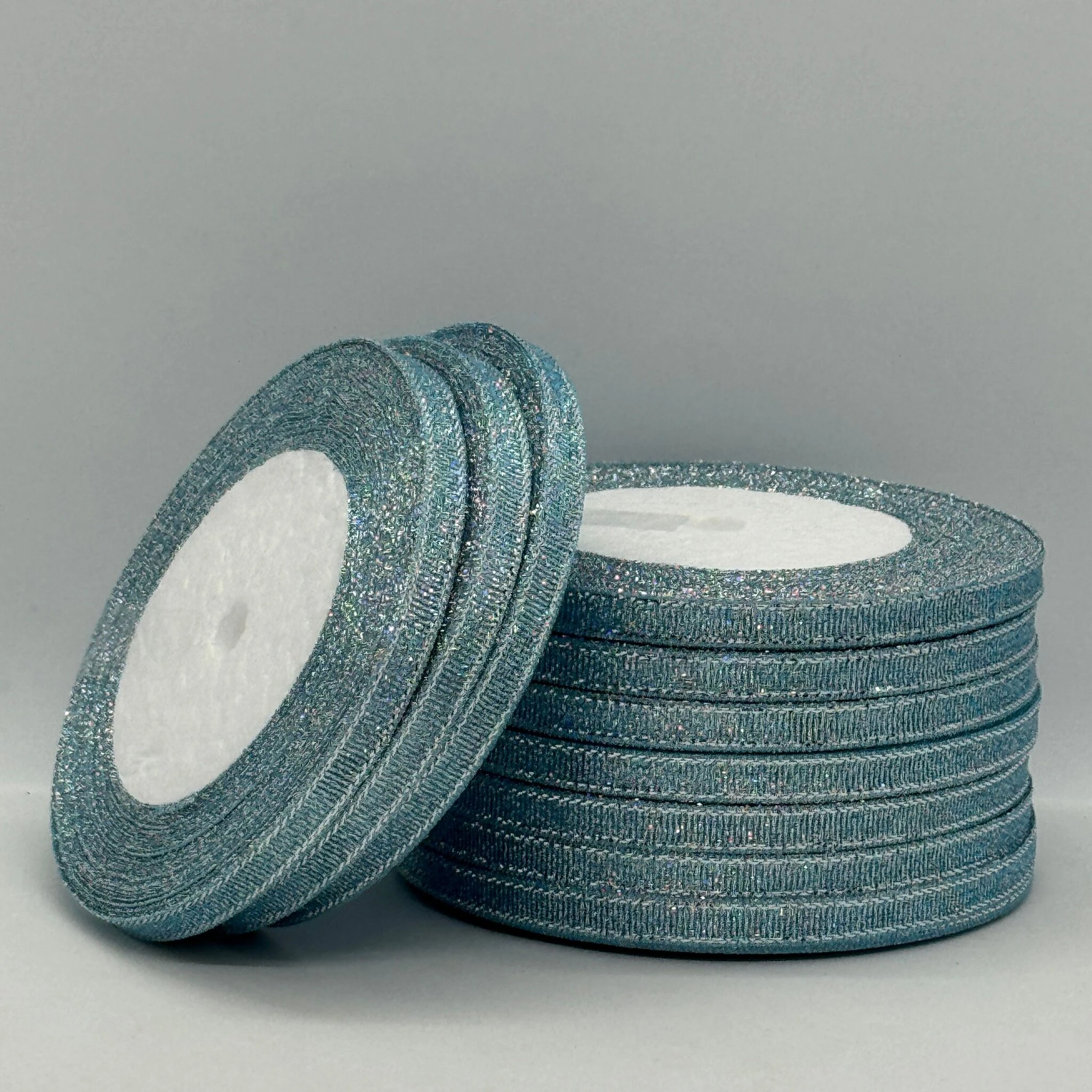 Тасьма парчева 0,6 см (10*25 ярдів/22,75 м.), 70 блакитний + срібло
