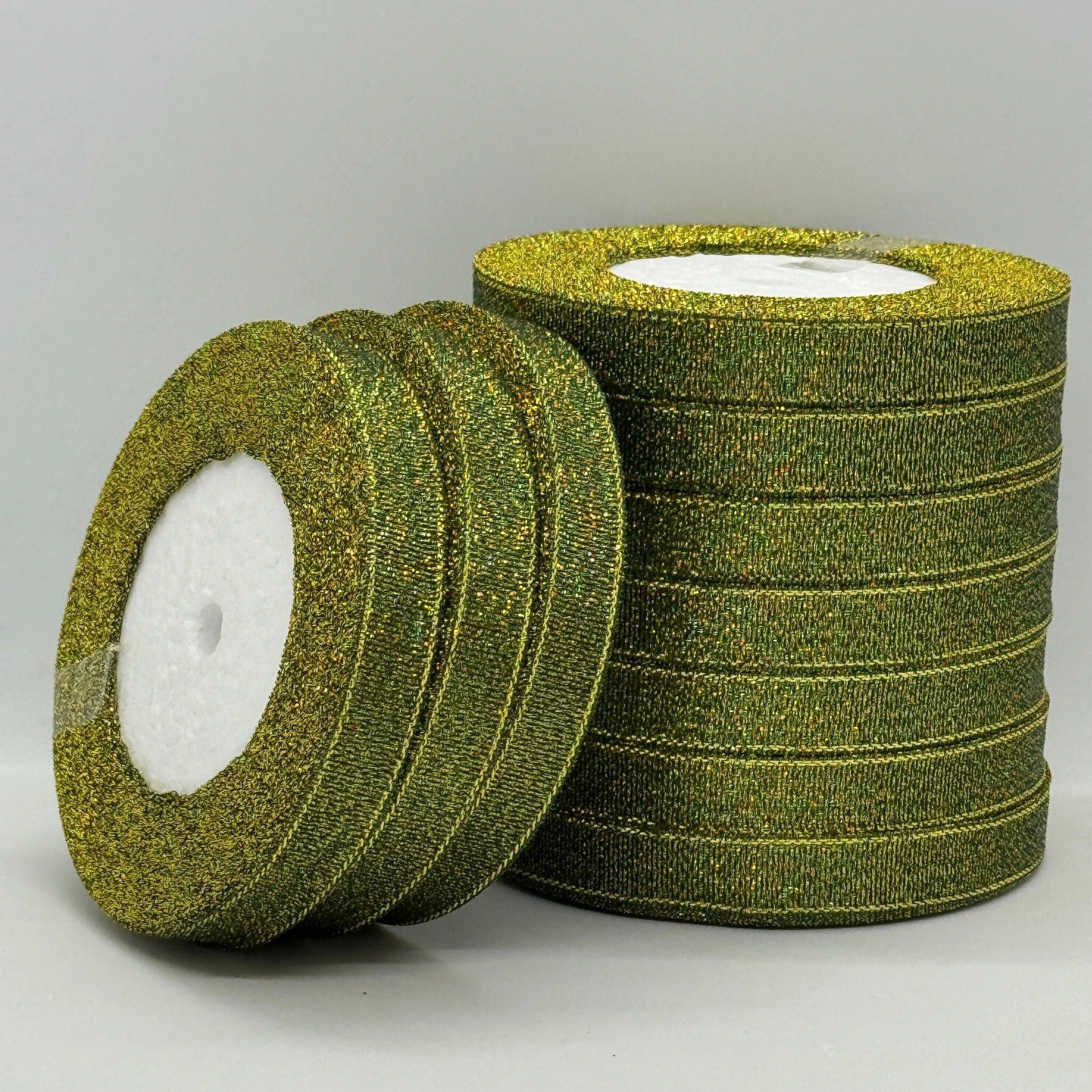 Тасьма парчева 1,2 см (10*25 ярдів/22,75 м.), 77 темний зелений + золото