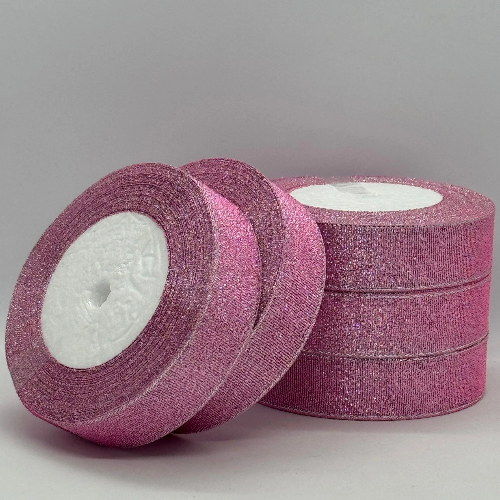 Тасьма парчева 2,5 см (5*25 ярдів/22,75 м.), 4 світло рожевий + срібло