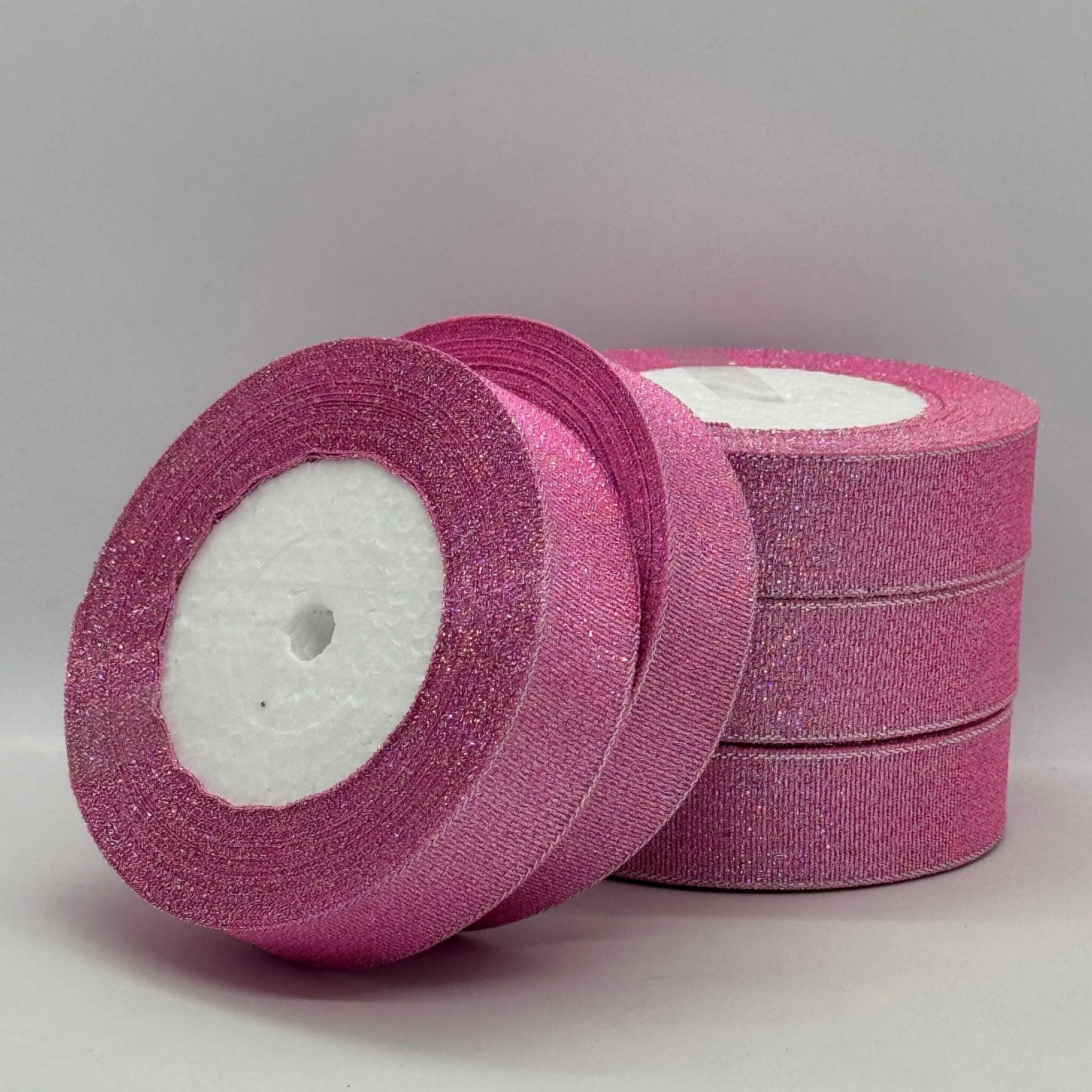 Тасьма парчева 2,5 см (5*25 ярдів/22,75 м.), 45 рожевий + срібло