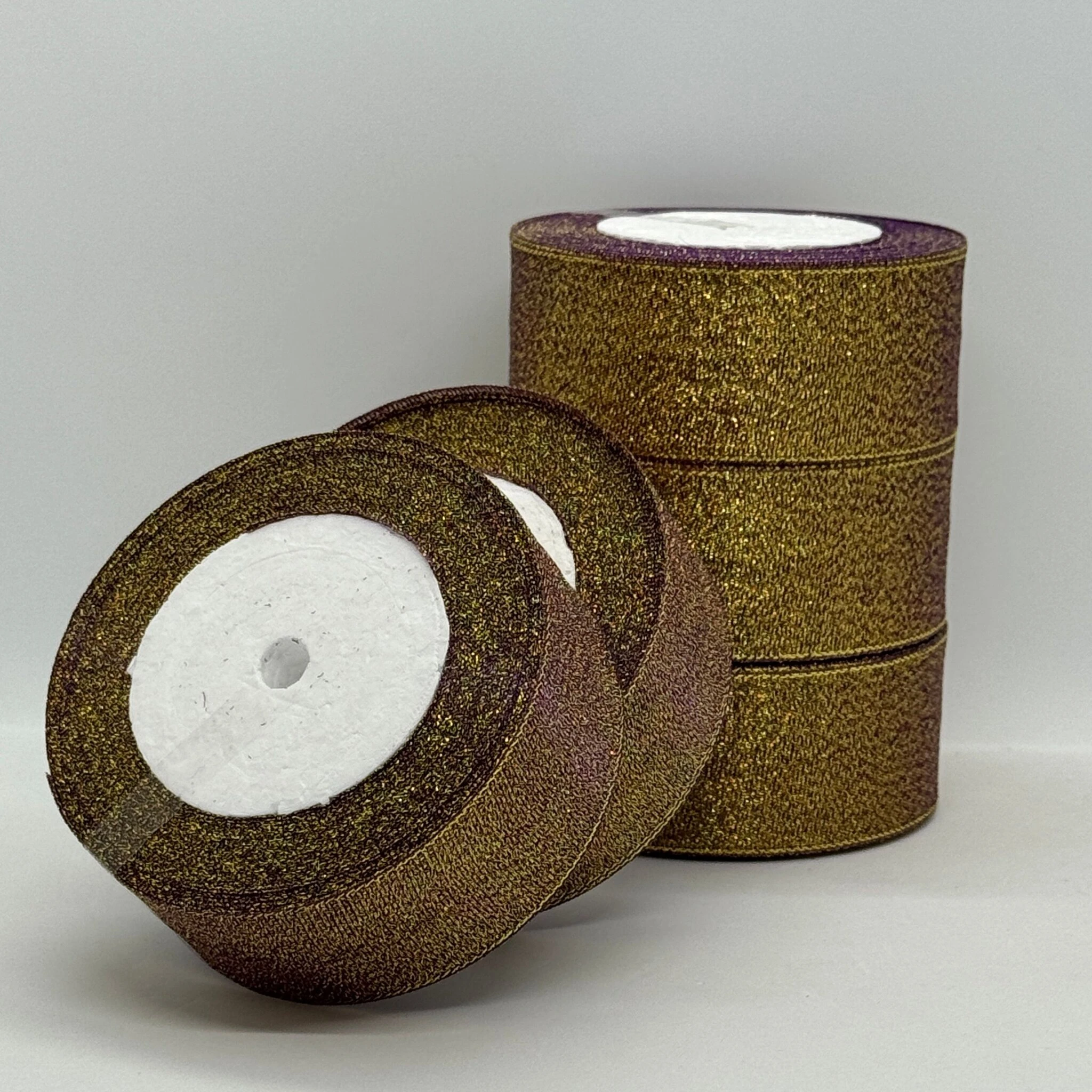 Тасьма парчева 4 см (5*25 ярдів/ 22,75 м.), 46 баклажан + золото
