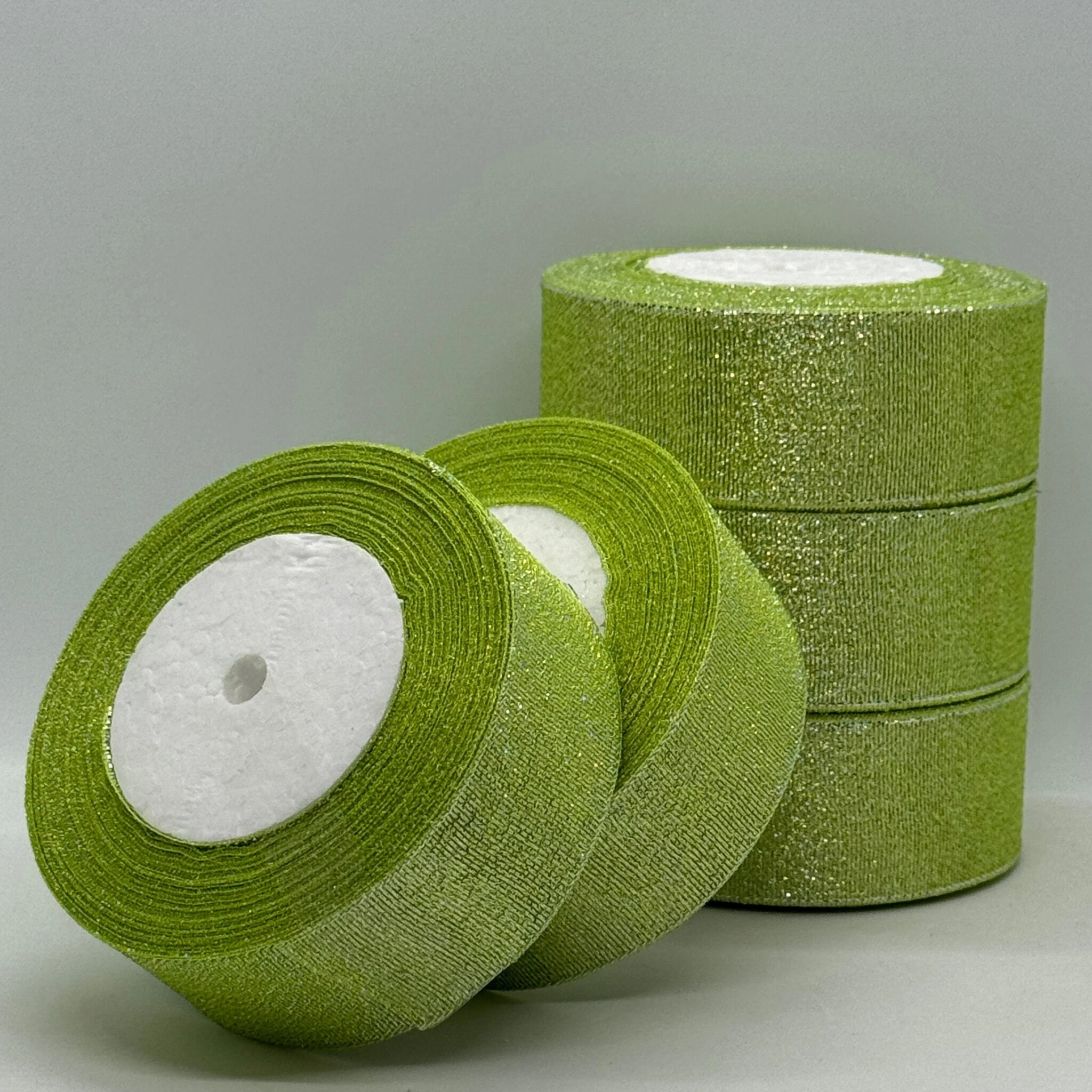 Тасьма парчева 4 см (5*25 ярдів/ 22,75 м.), 95 салатовий + срібло