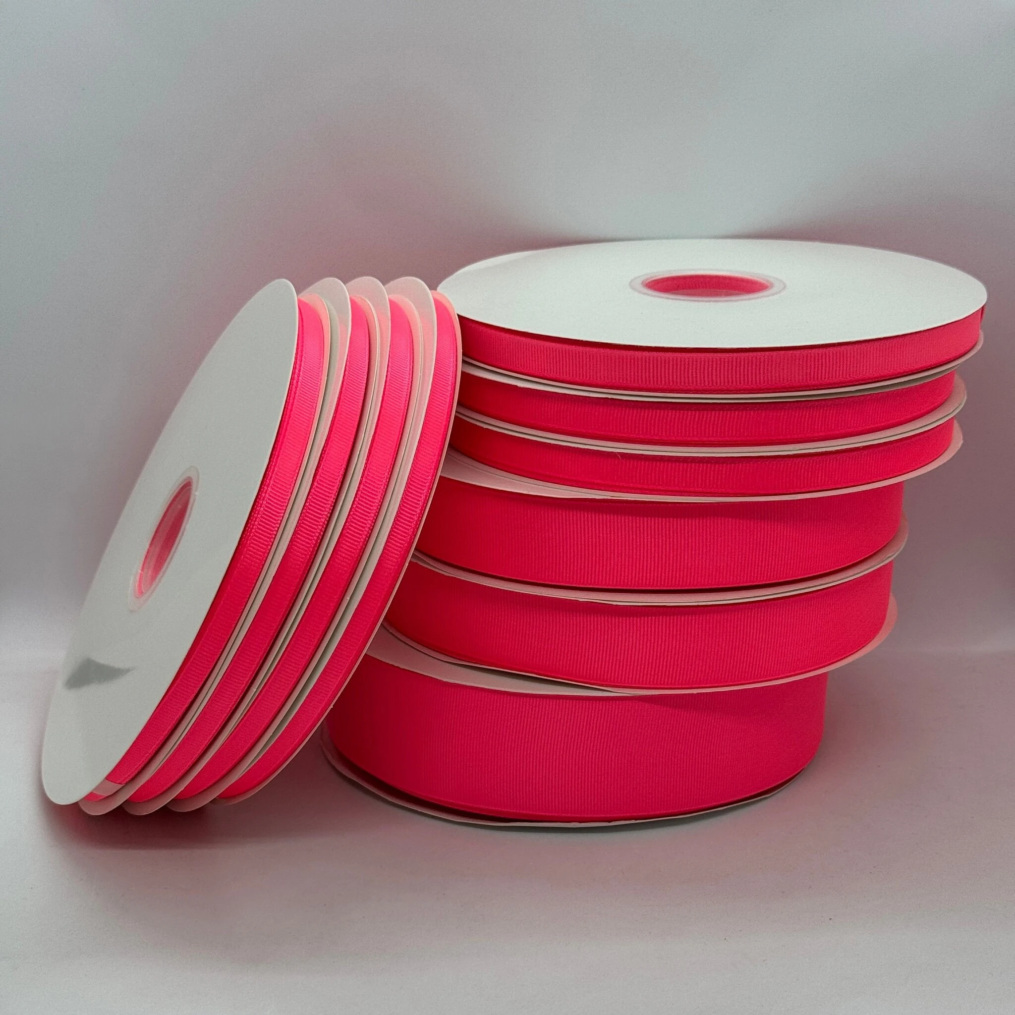 Стрічка репс 1 см (25*100 ярд/ 91 м.), 1014 неон рожевий