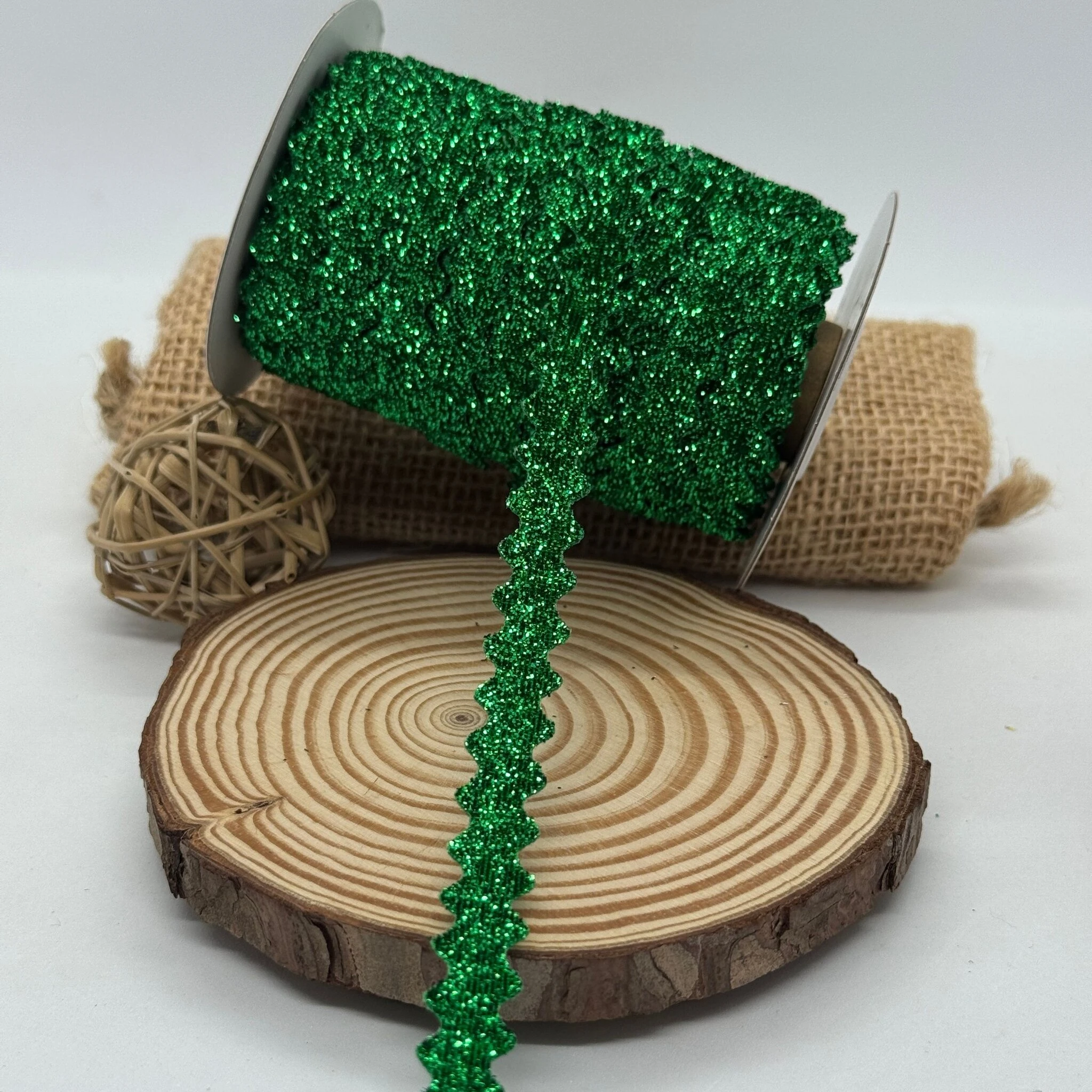 Стрічка вюнчик оксамитовий парча люрекс 1 см (25 ярдів/22,75 м.), 06 зелений