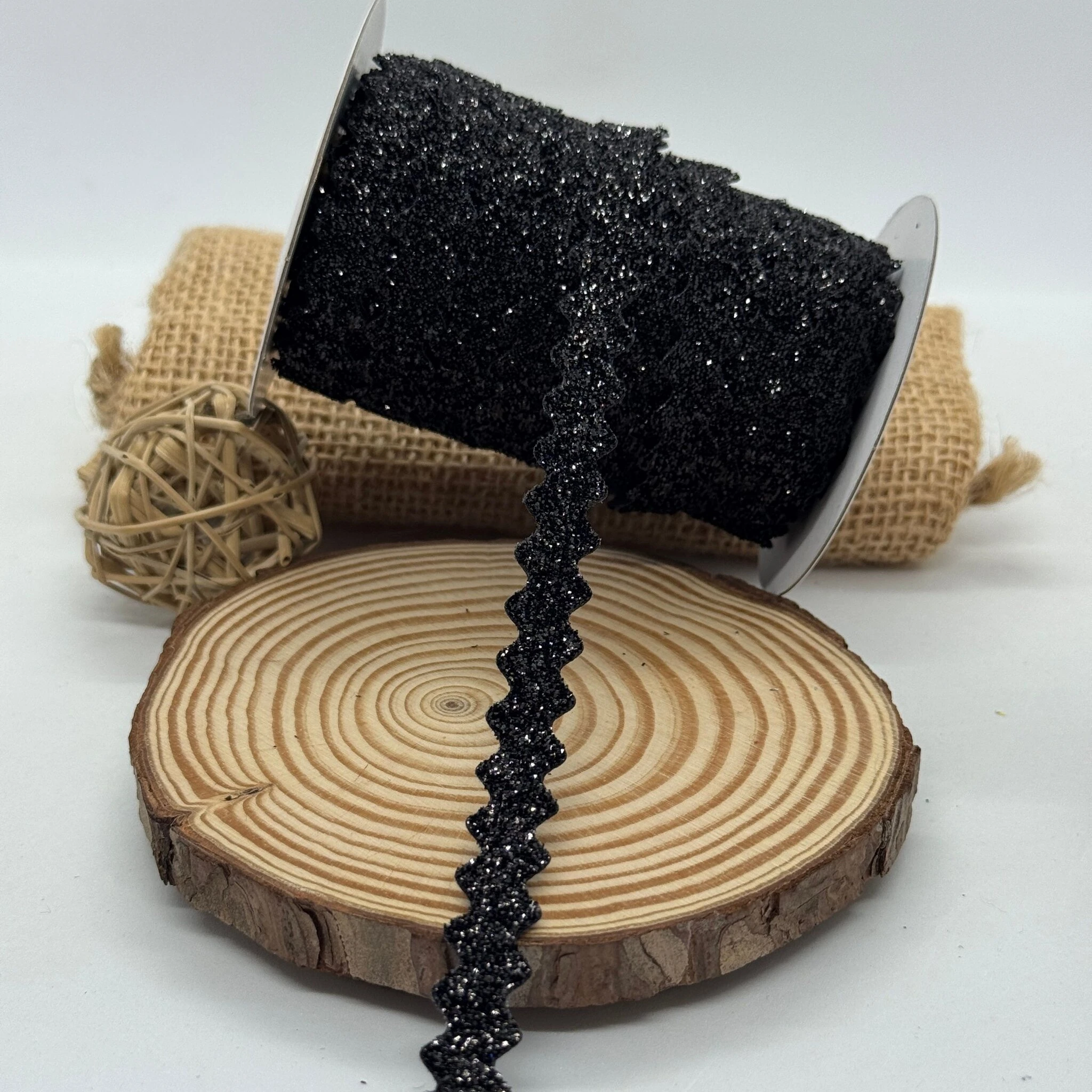 Стрічка вюнчик оксамитовий парча люрекс 1 см (25 ярдів/22,75 м.), 08 чорний