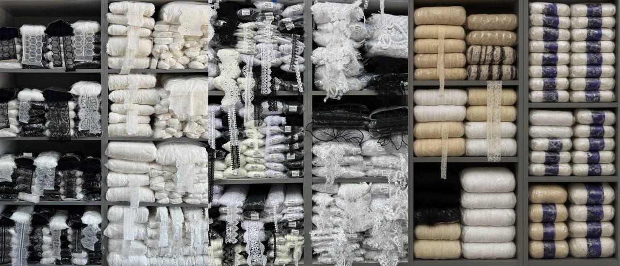 Кружево оптом от импортера и сопутствующая фурнитура для серийного пошива