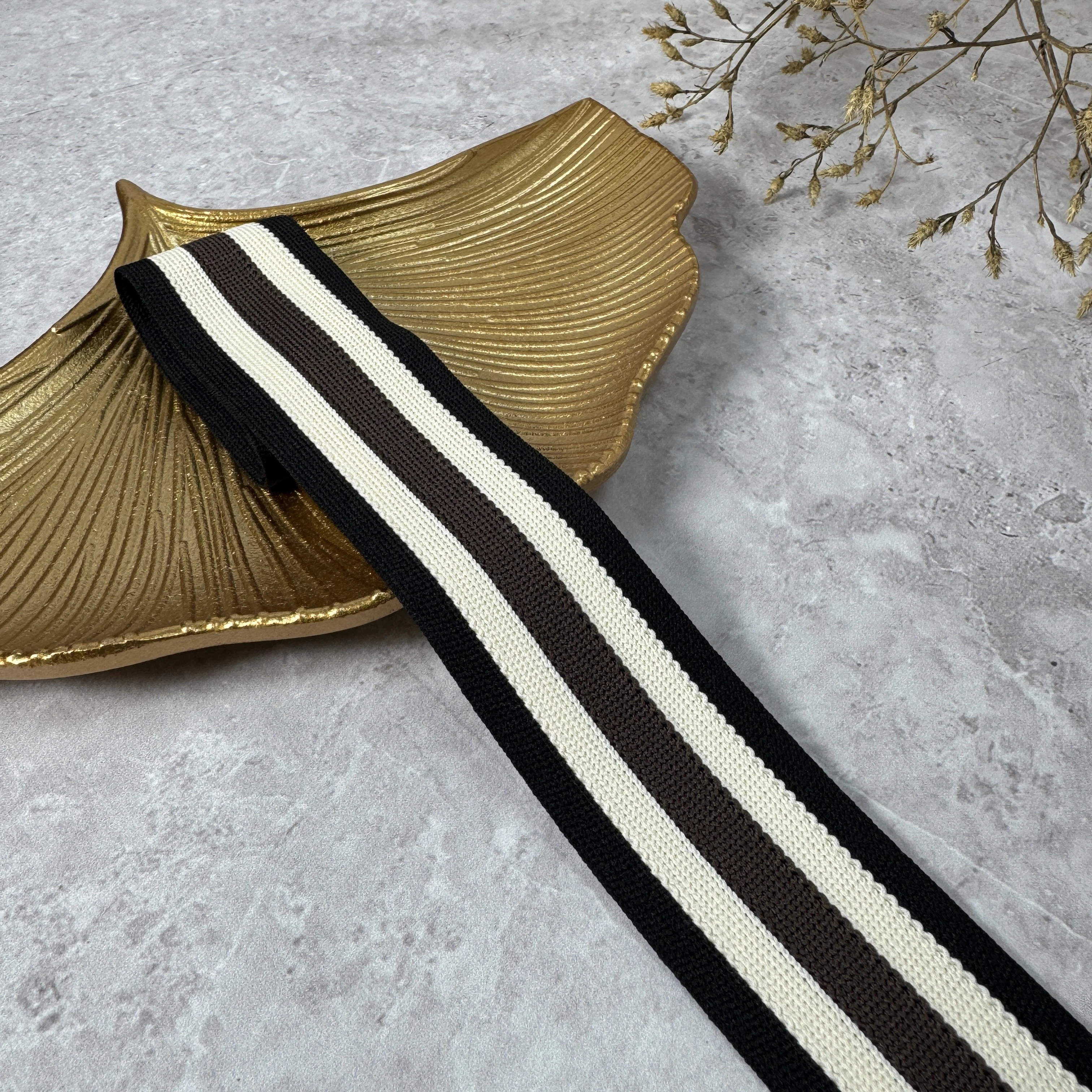 Лампас трикотажный 4 см «5 линий»(50 м), чёрный+тёмный шоколад