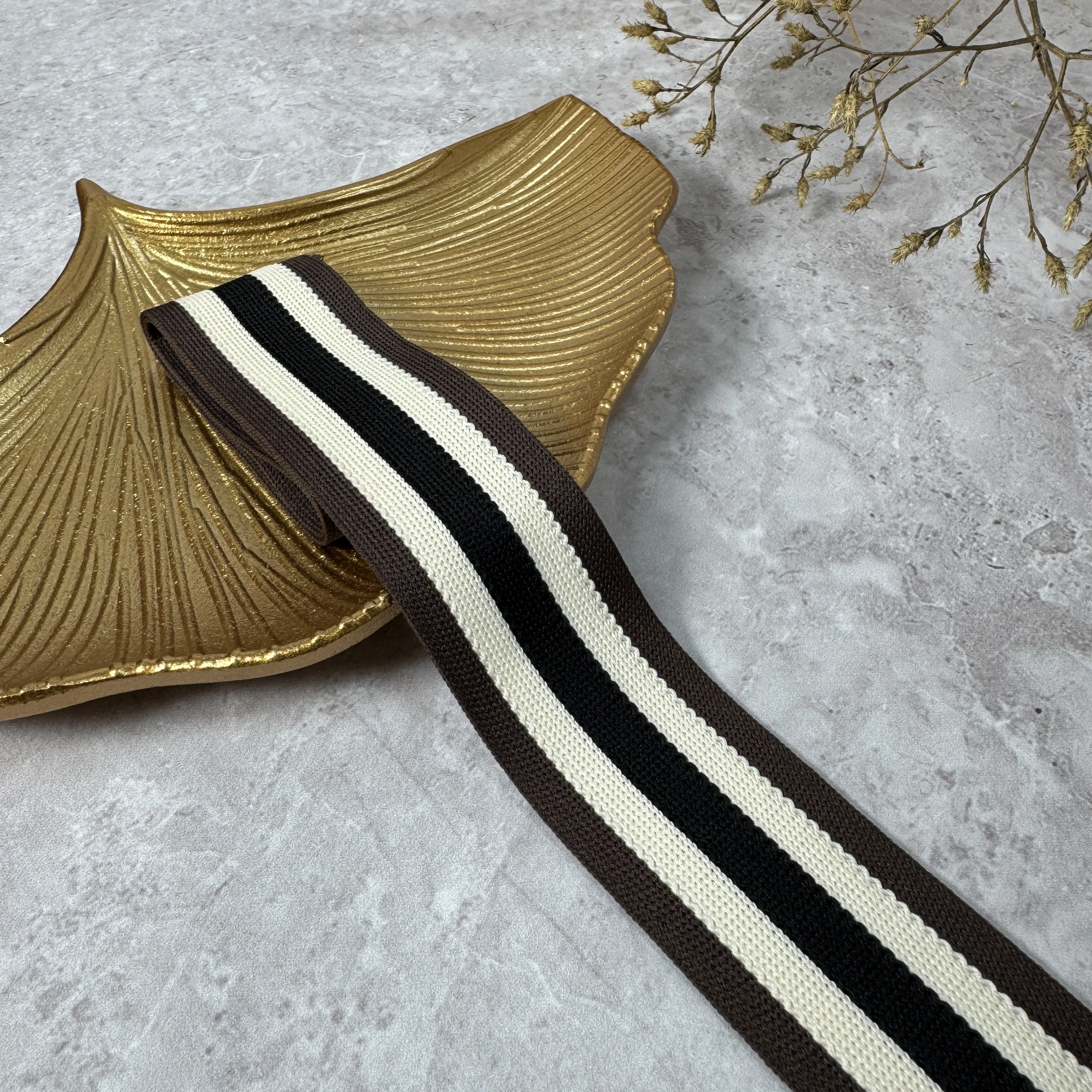 Трикотажный лампас с дизайном «5 линий», предназначенный для оптовых закупок и серийного пошива одежды. Имеет эластичную структуру, удобен в работе, хорошо тянется и сохраняет форму после стирки. Стабильное качество подходит для швейного производства.