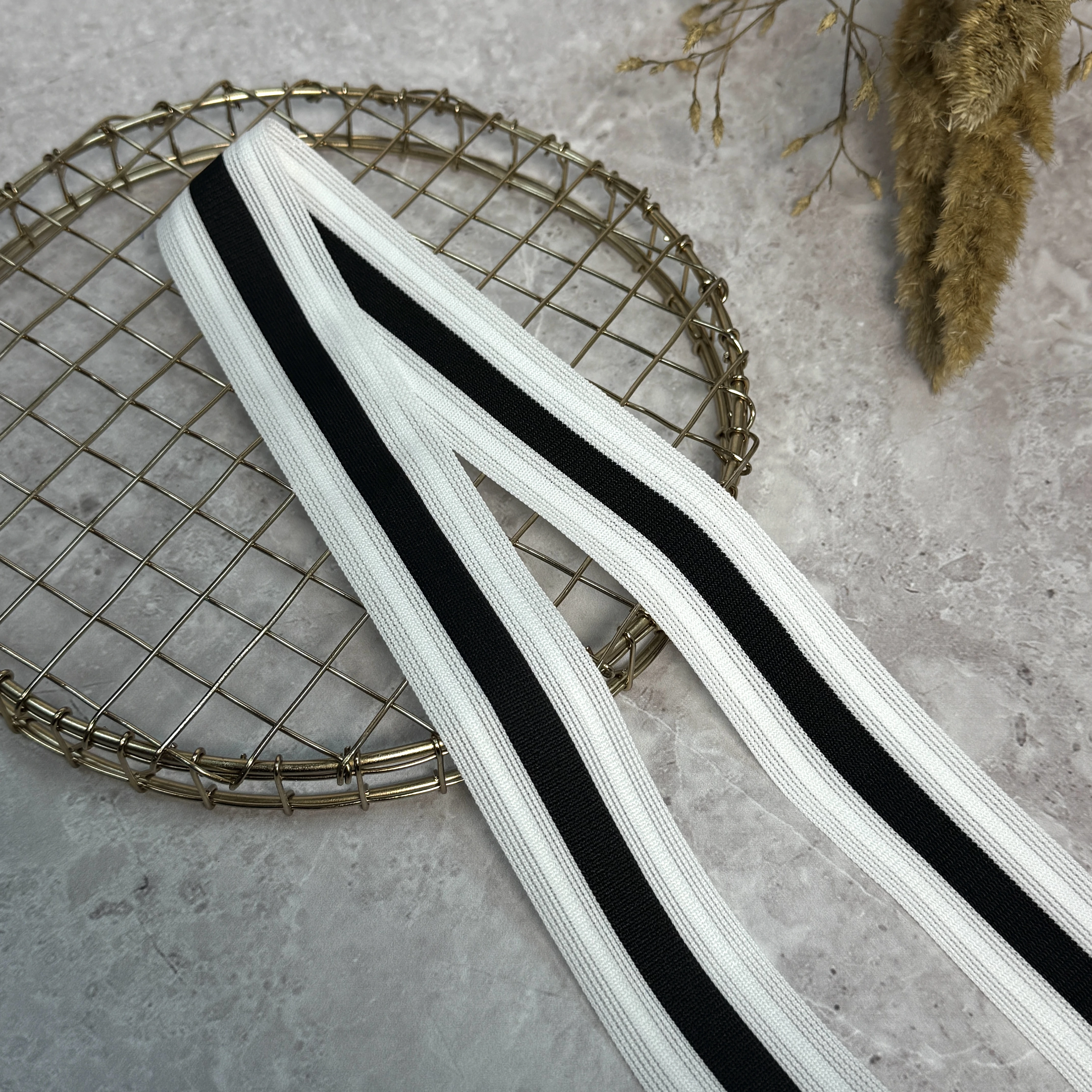 Лампас трикотажный 4 см "Urban Edge" (50 м), ``` белый+чёрный ```