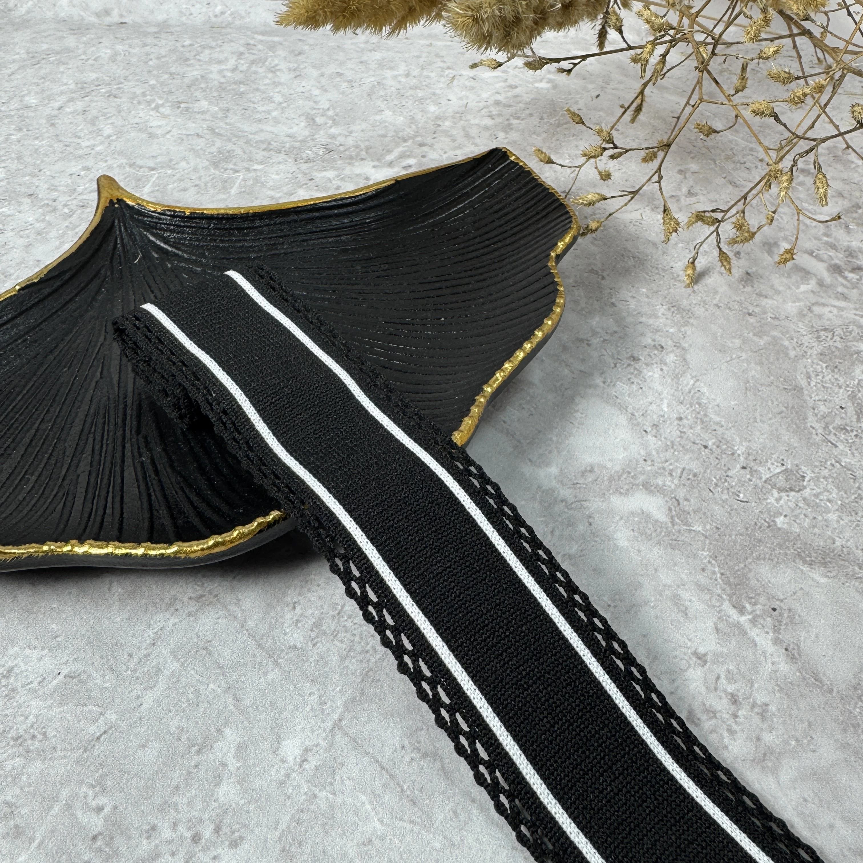 Лампас трикотажный 4 см «двойной акцент»(50 м), чёрный