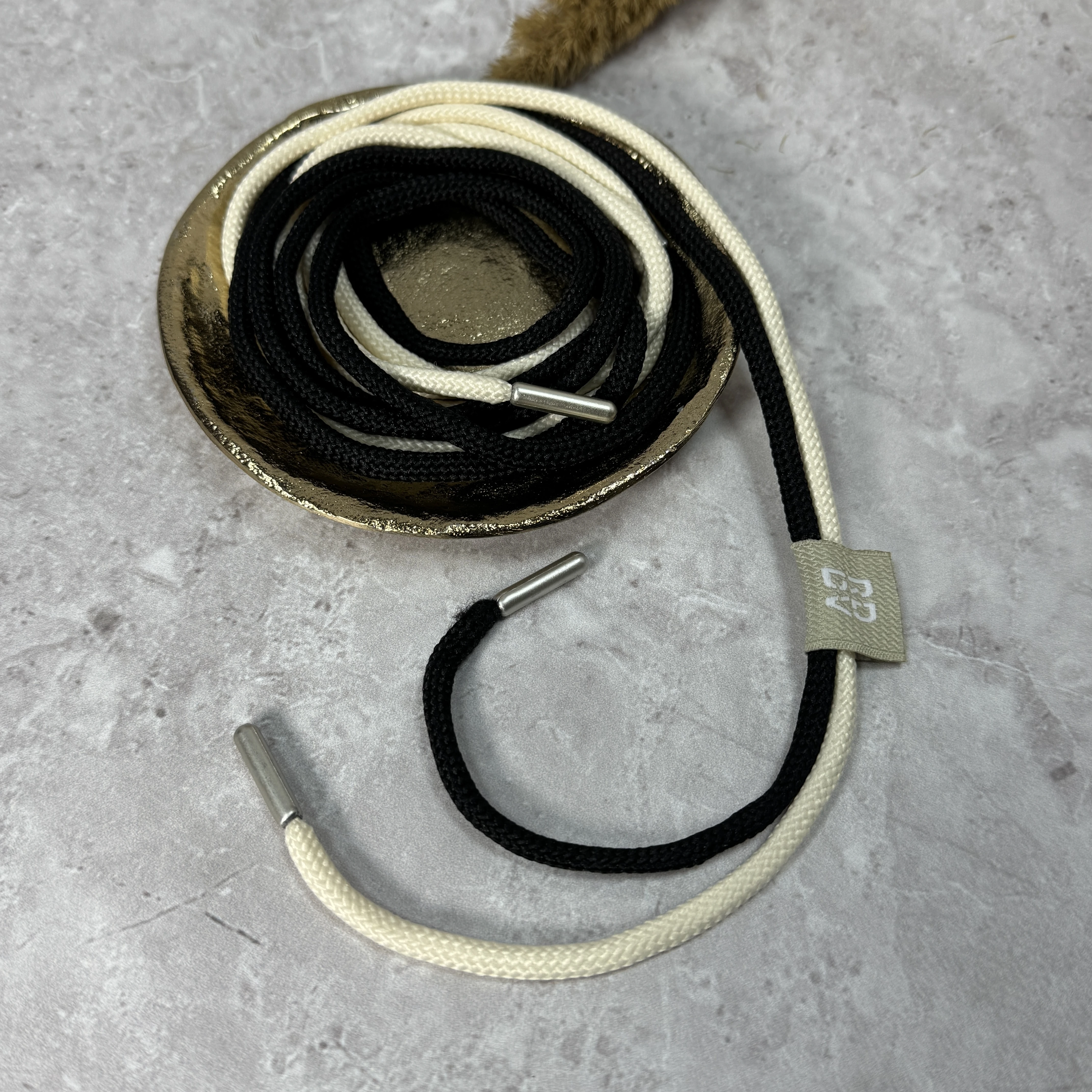 Шнурок в штаны круглый двойной (140 см), молочный+чёрный