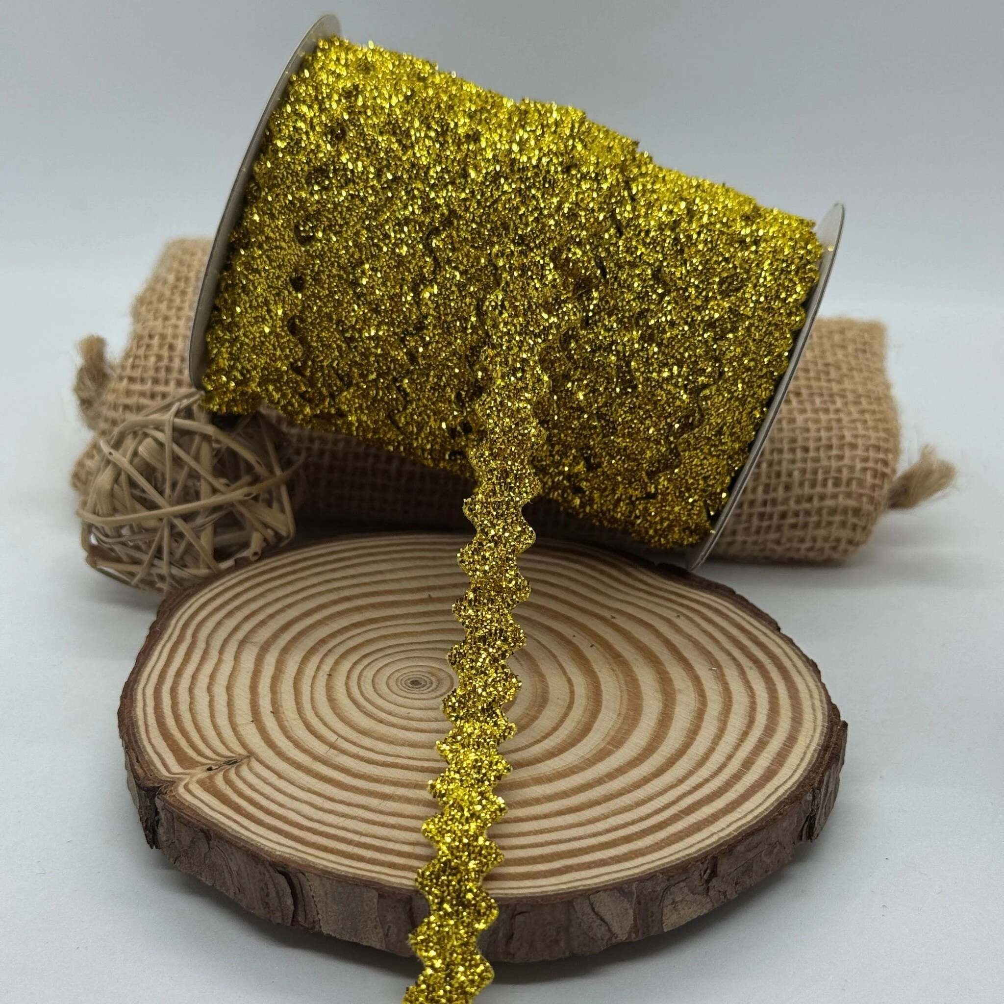 Лента бантовая бархатная парча люрекс 1 см (25 ярдов/22,75 м.), 02 золотой